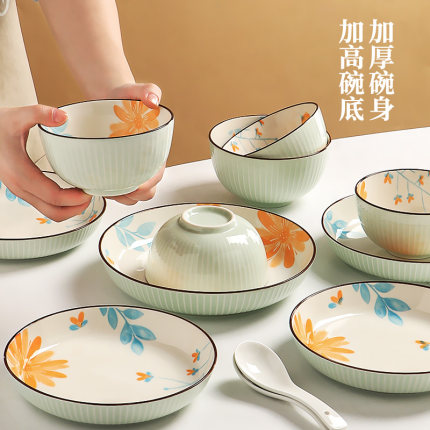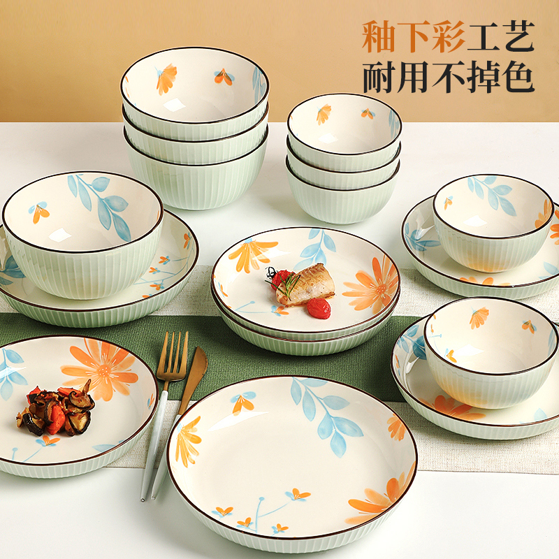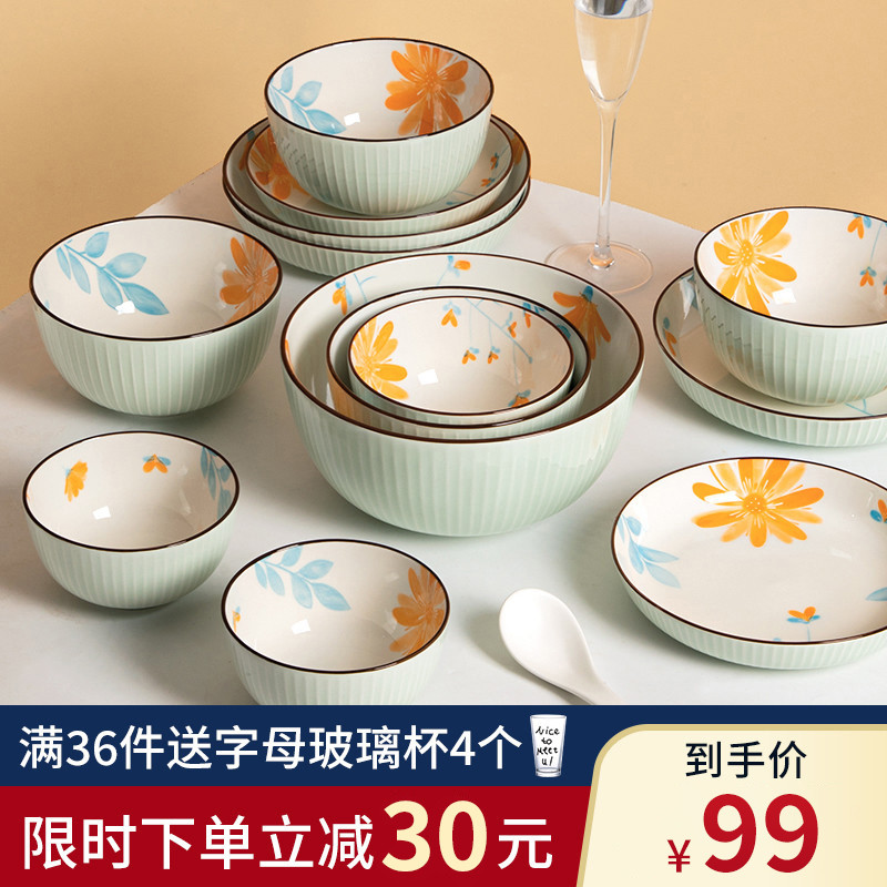 日式陶瓷碗碟套装家用饭碗2021新款网红创意餐具碗盘碗筷盘子雏菊