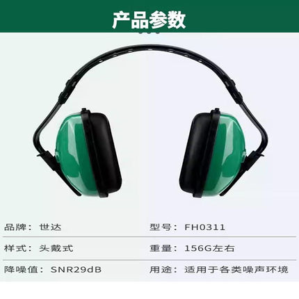 SATA世达头戴式隔音降噪耳罩 工业级超级防噪音 学习睡眠FH0311