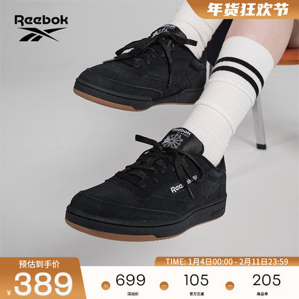 Reebok锐步官方男女情侣款Club C 85黑武士复古百搭运动休闲板鞋