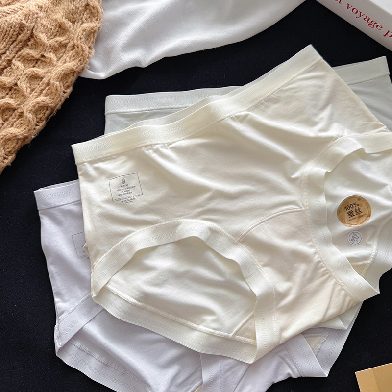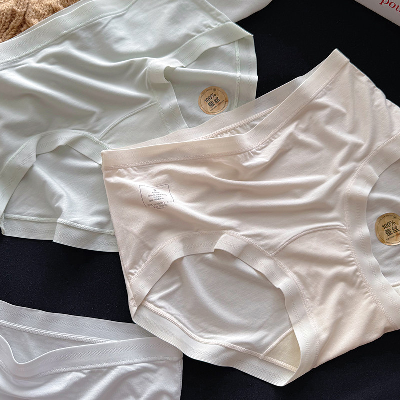 【全裤7A抑菌】80支兰精莫代尔内裤女士无痕中腰100%桑蚕丝真丝裆
