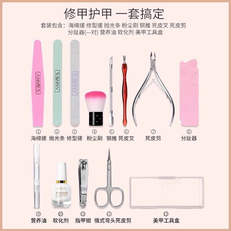恩妮诗修手指甲边缘去角质软化剂钢推死皮剪护理工具套装美甲专用