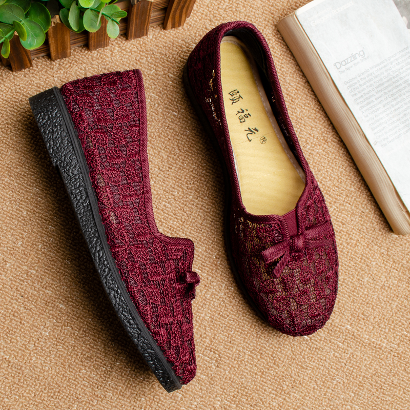 老北京布鞋夏季平底蕾丝奶奶鞋