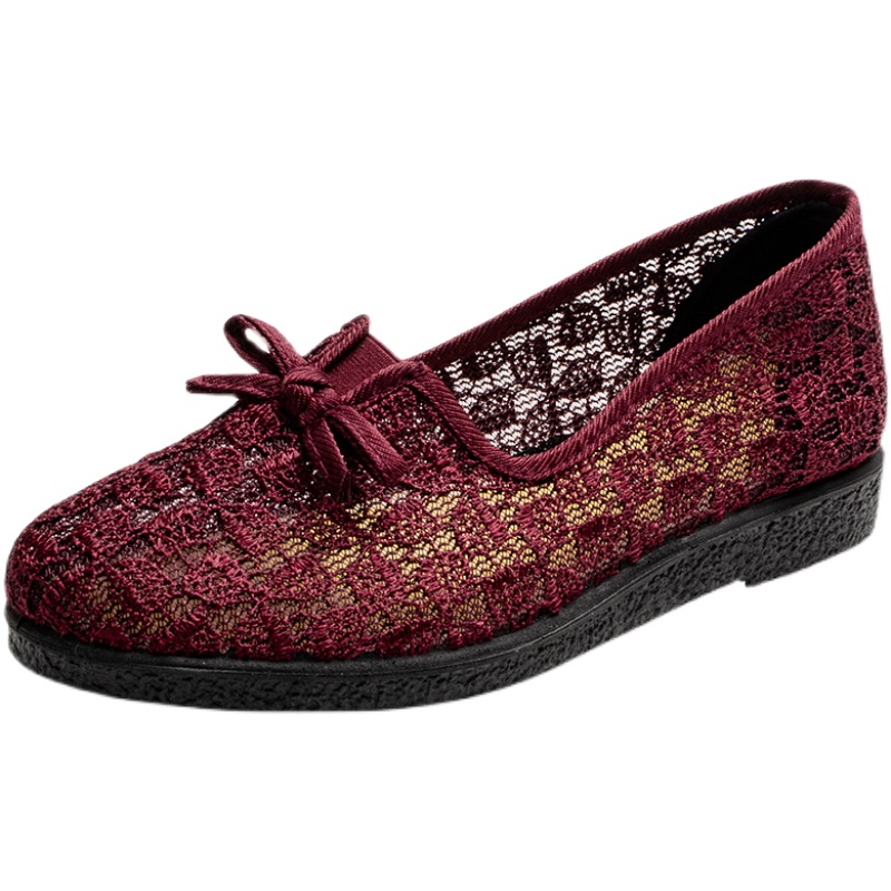 老北京布鞋夏季女网鞋平底蕾丝妈妈鞋中老年奶奶鞋透气老人网布鞋
