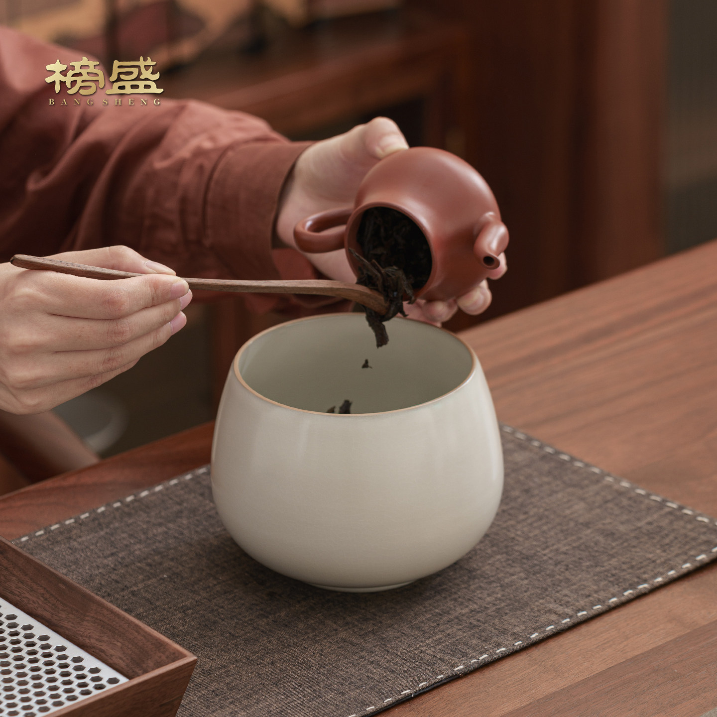 榜盛汝窑米黄茶洗陶瓷开片茶渣缸