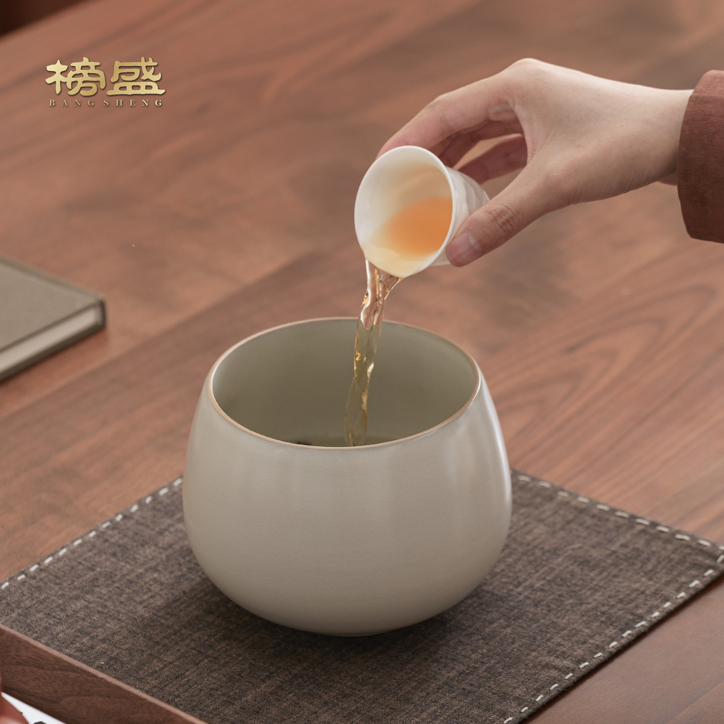 榜盛汝窑米黄茶洗陶瓷开片可养大容量建水杯洗笔洗家用水盂茶渣缸