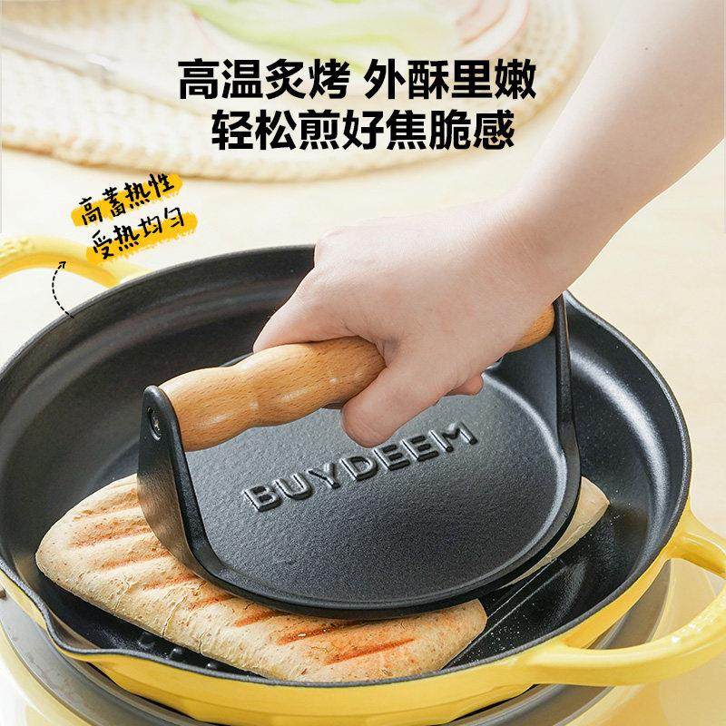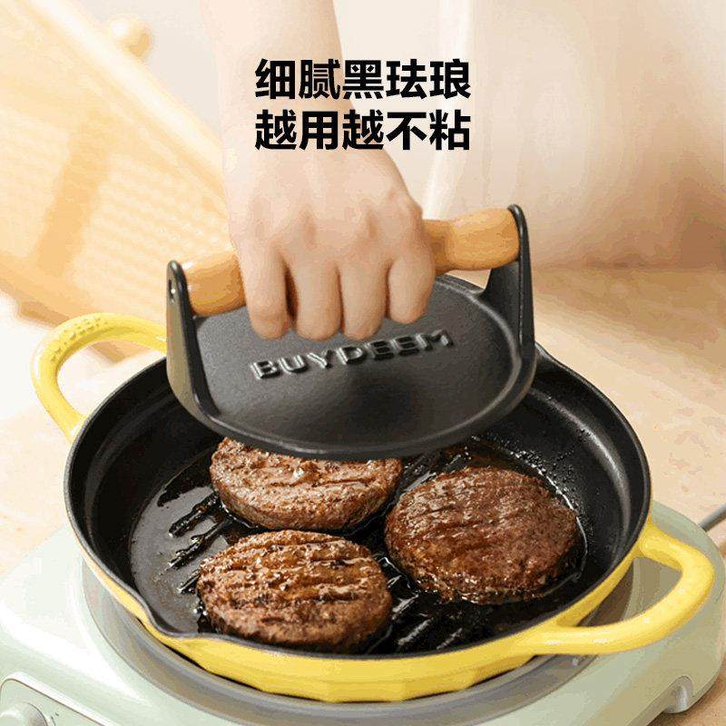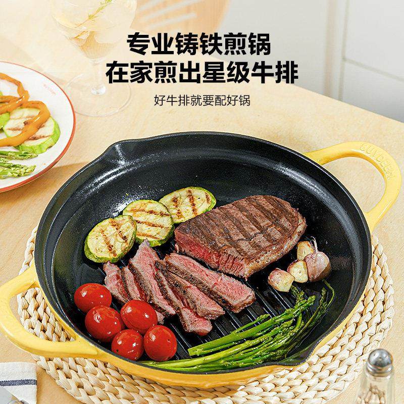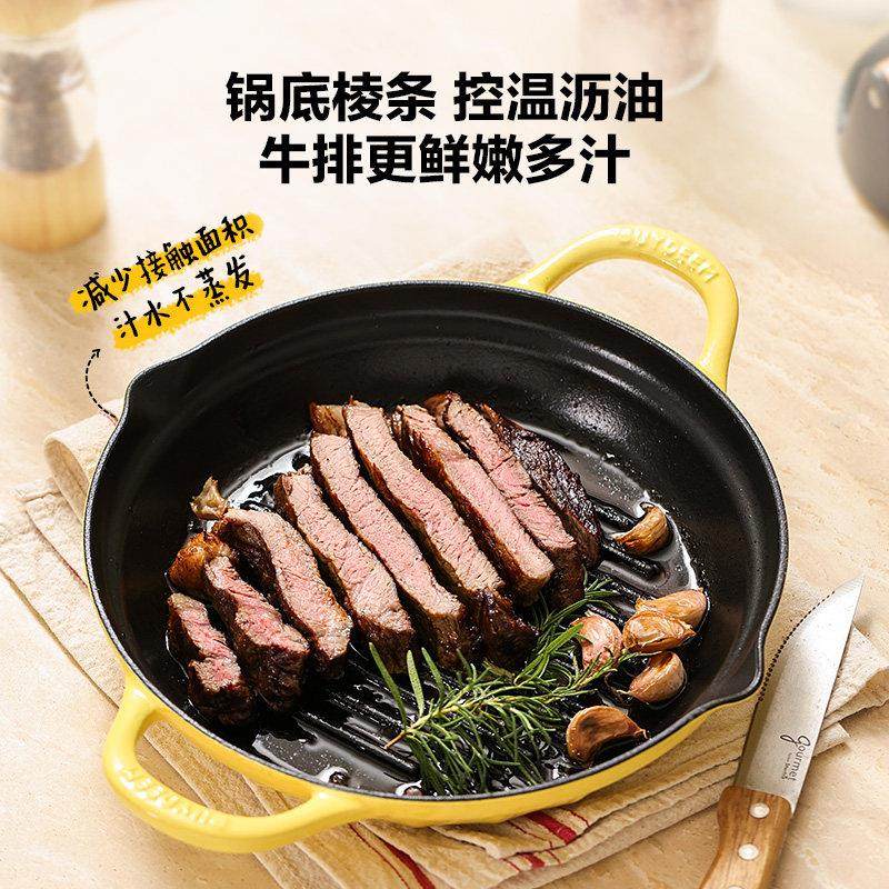 北鼎铸铁牛排锅专用煎锅煎锅圆形条纹珐瑯锅煎锅平底锅烤肉
