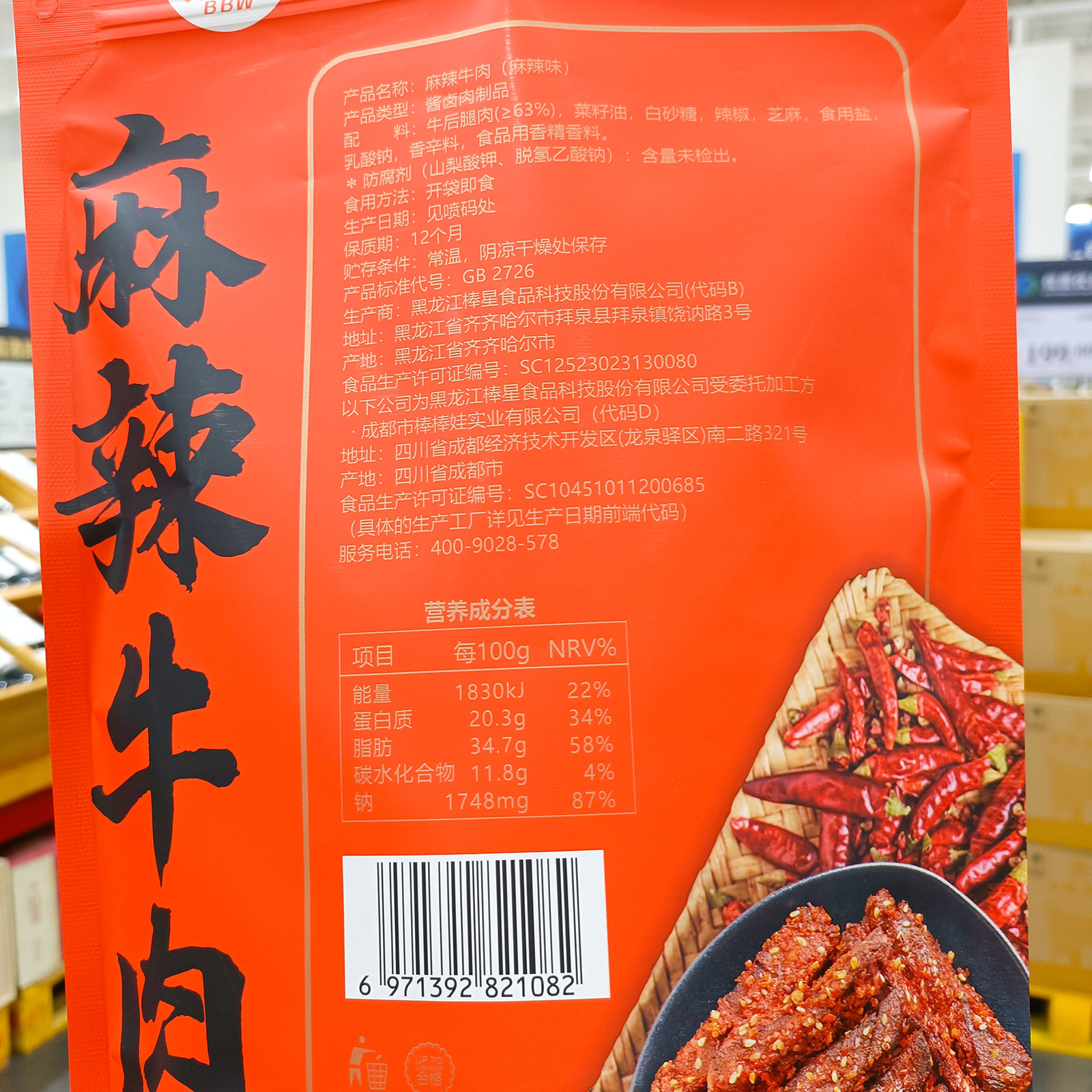 山姆超市代购棒棒娃麻辣牛肉560g嚼劲道手撕牛肉干肉脯制品零食