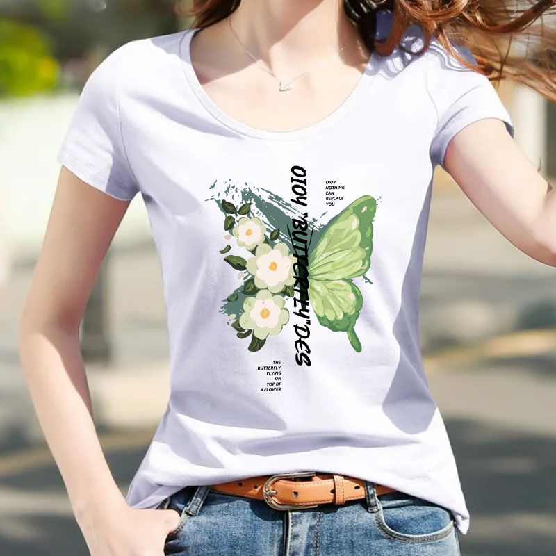 短袖潮牌蝴蝶纯棉夏季女T恤