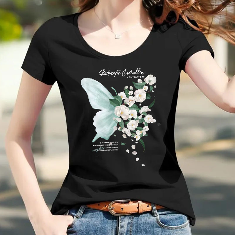 t恤女短袖2025夏季新款潮牌时尚卡通蝴蝶纯棉体恤百搭修身上衣服