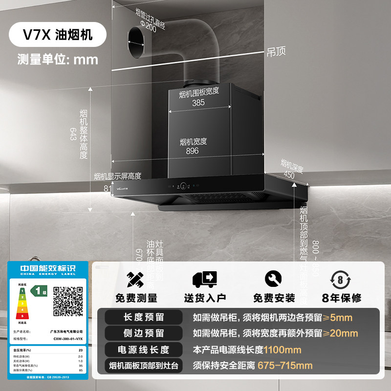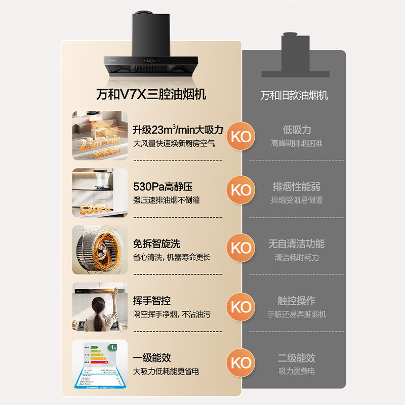 [品牌补贴]万和环翼系列新品超薄欧式性价比家用大吸力油烟机V7X