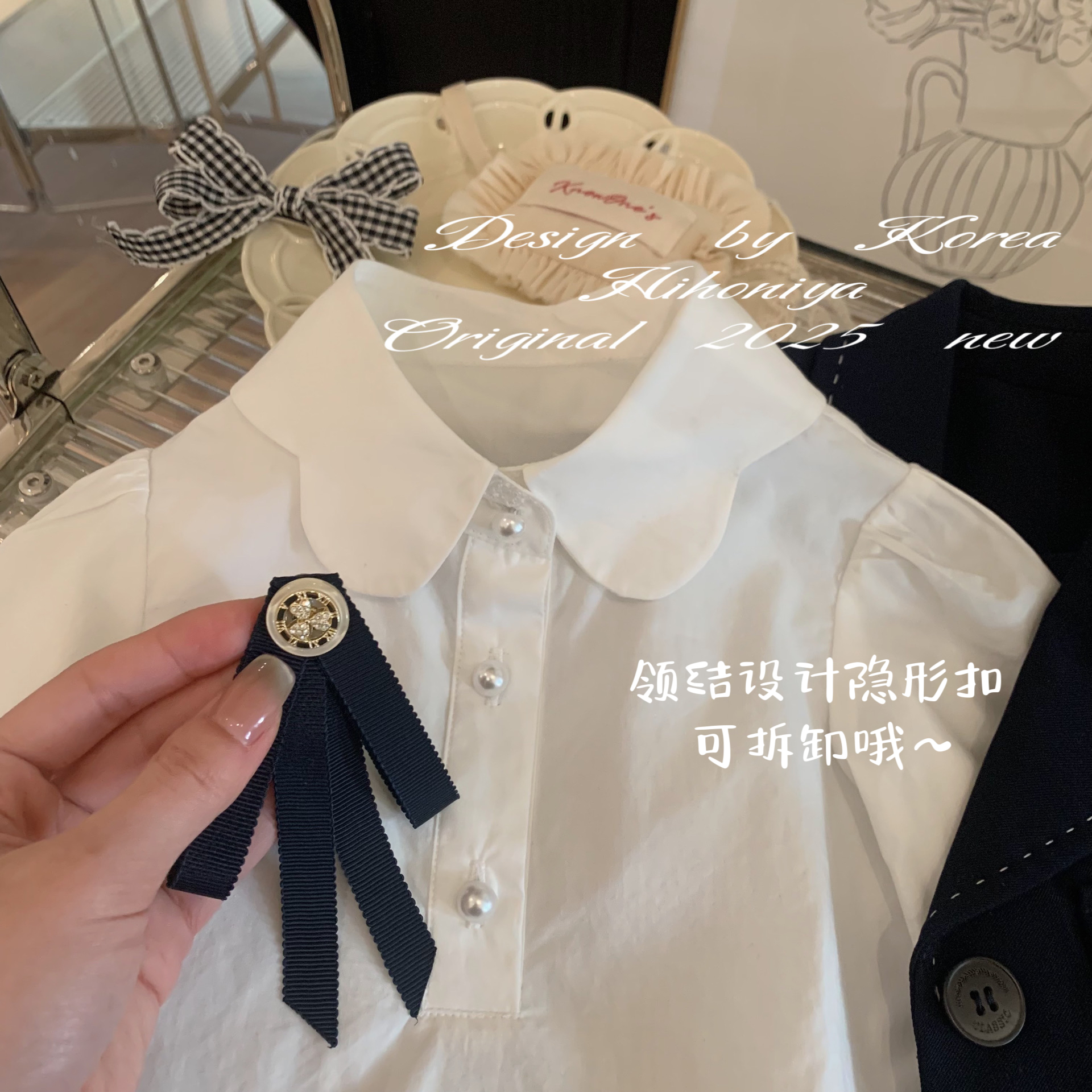 Spring韩国童装2025年春季亲子款花边领拼长袖接韩版衬衫女童衬衣