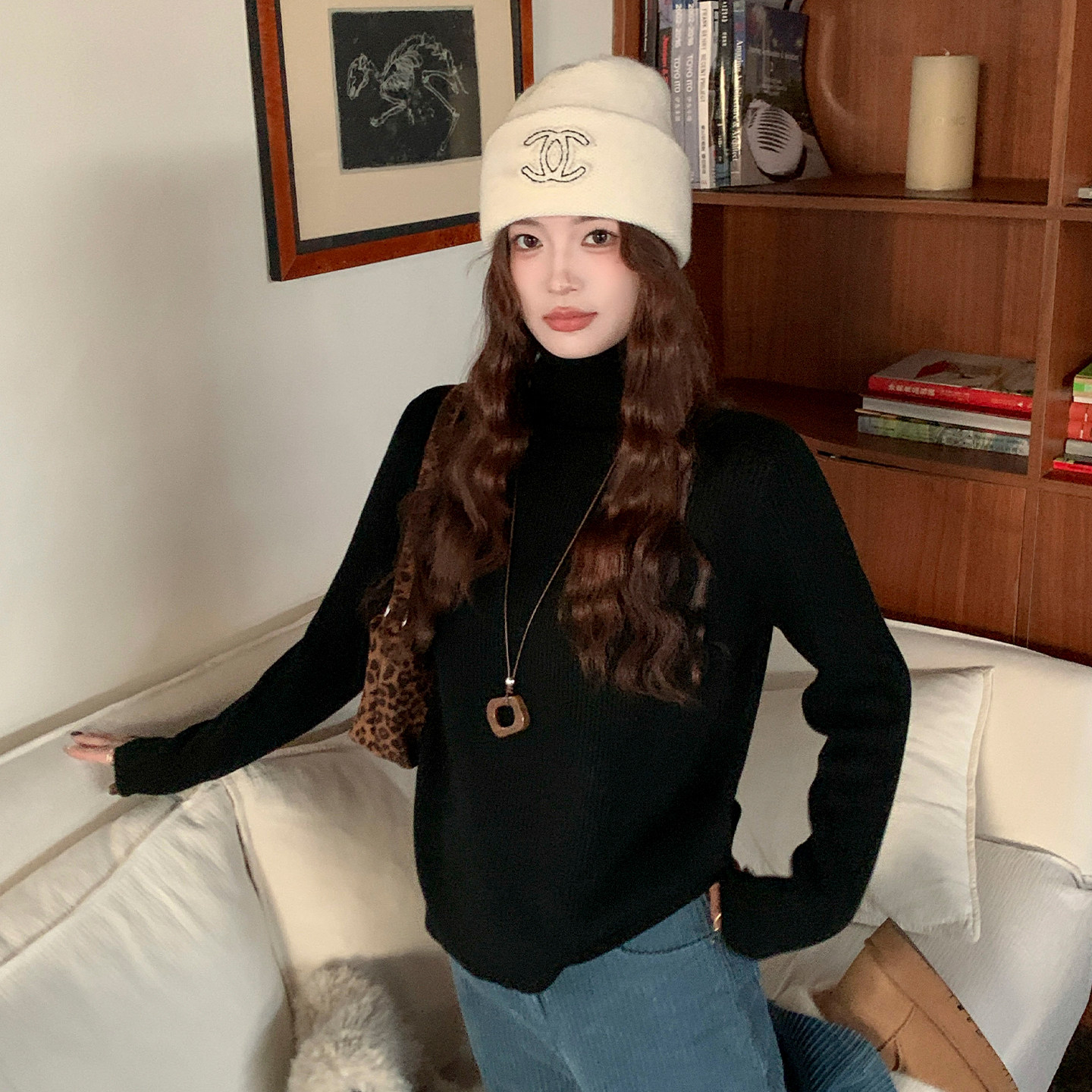 龙妹家灰色高领加绒加厚毛衣女内搭打底衫2025冬新款保暖针织上衣