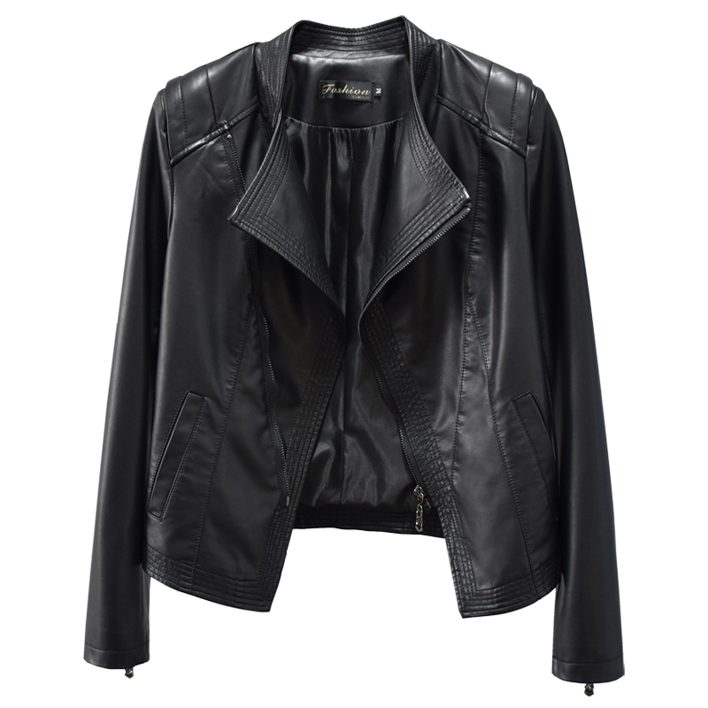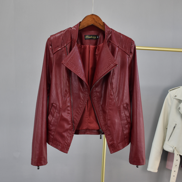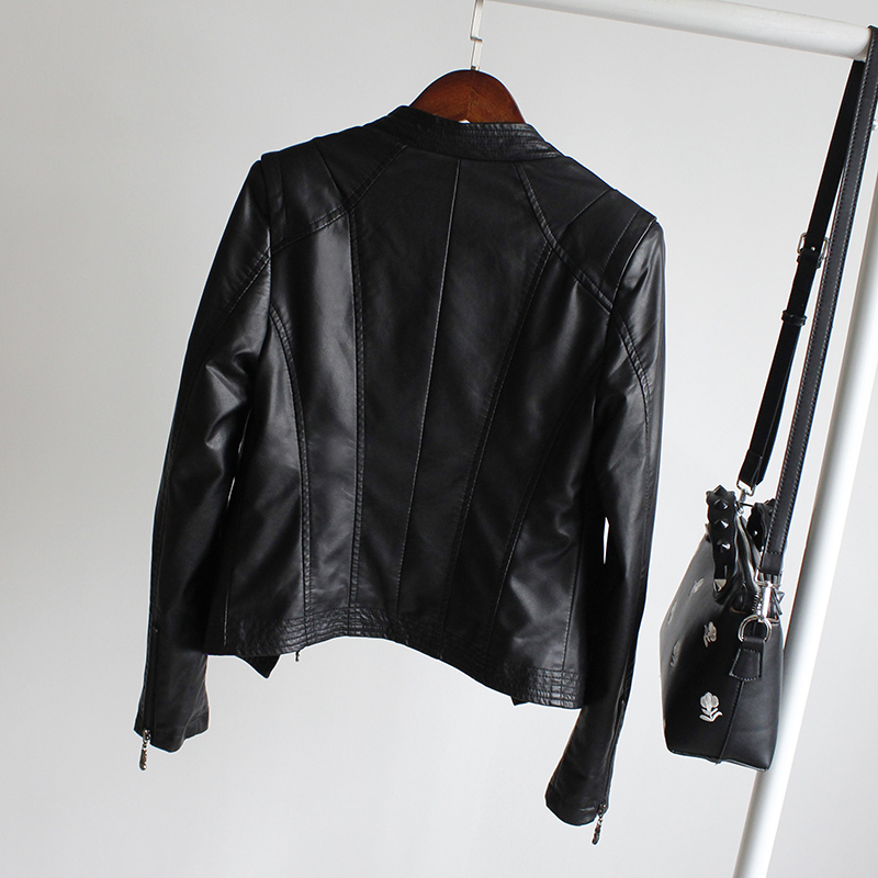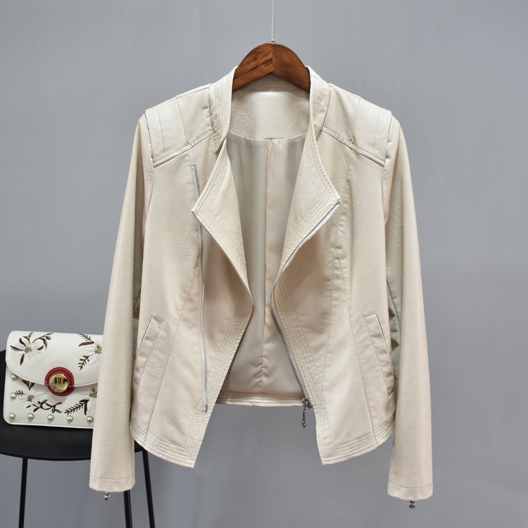 2025春装新款女装西装领修身短款PU水洗皮衣外套女显瘦百搭皮夹克