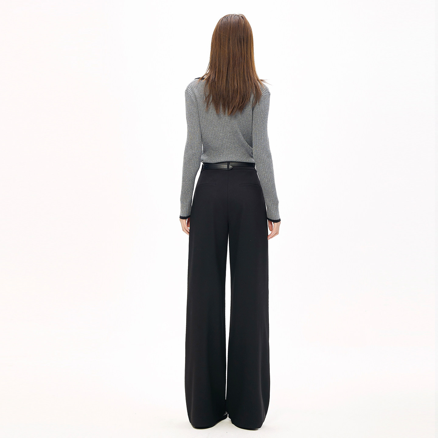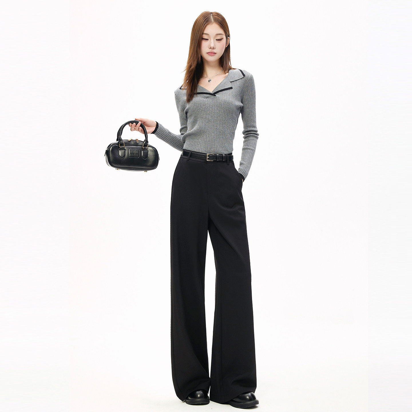黑色小个子TR西装面料适合腿粗胯宽屁股大梨型身材宽松阔腿裤女