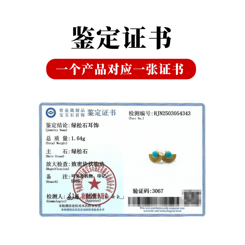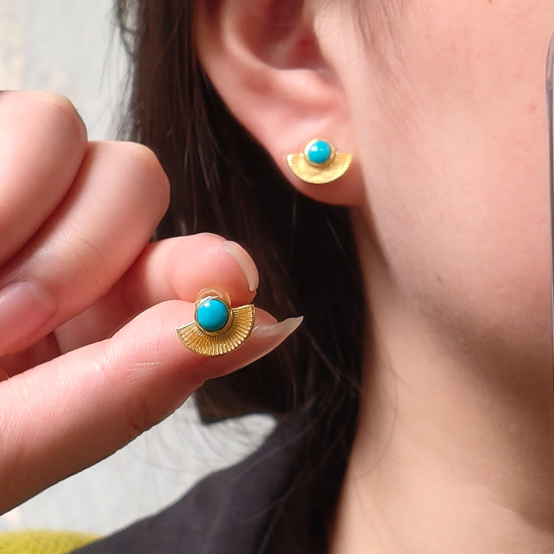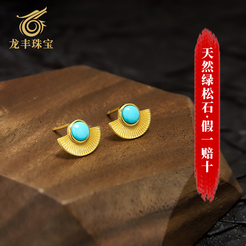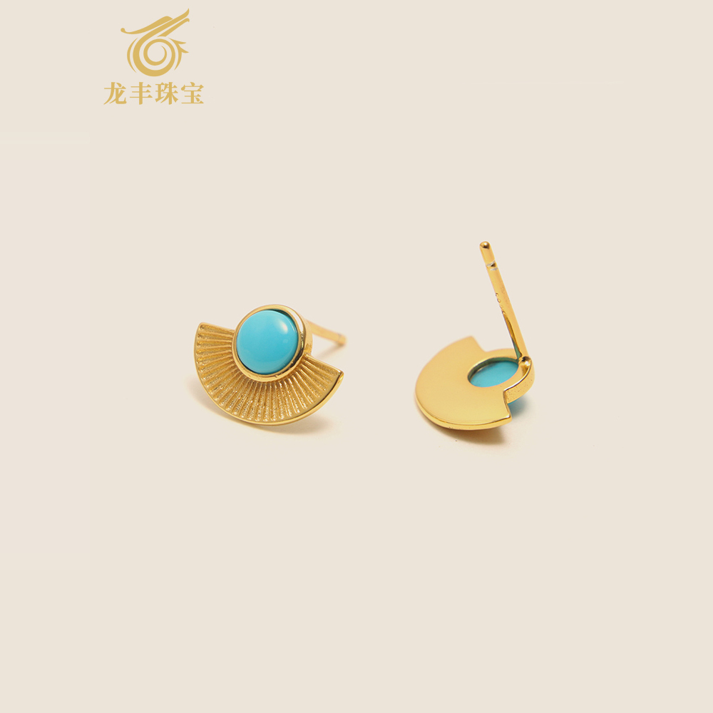 S925银镀18K黄金扇形耳环镶嵌天然绿松石轻奢高级独特气质女耳钉