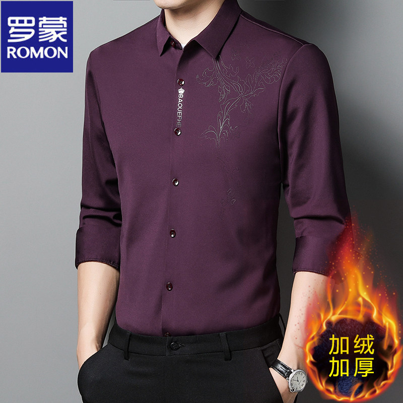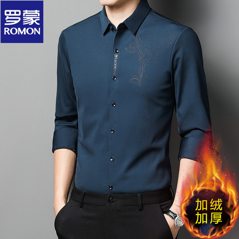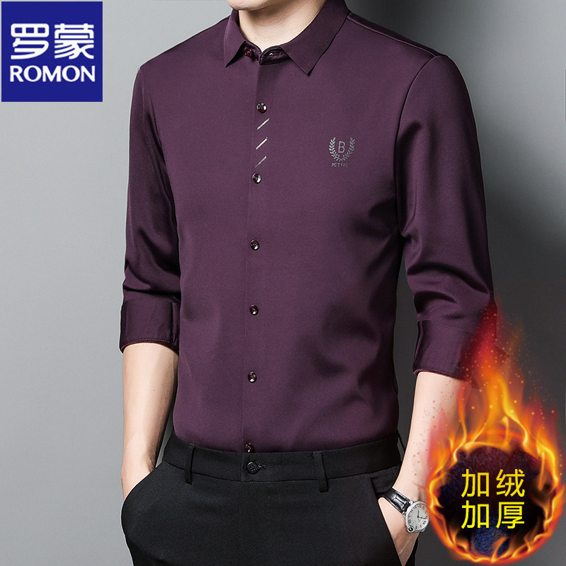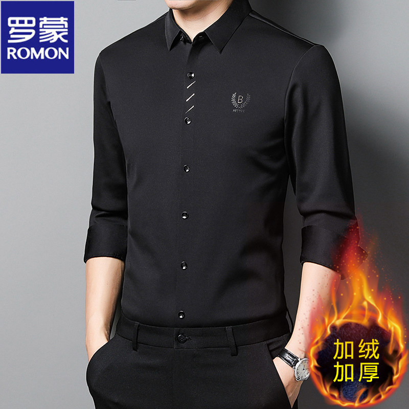 罗蒙加绒衬衫男2022冬季新款保暖衬衫中青年男士休闲无痕加厚衬衣