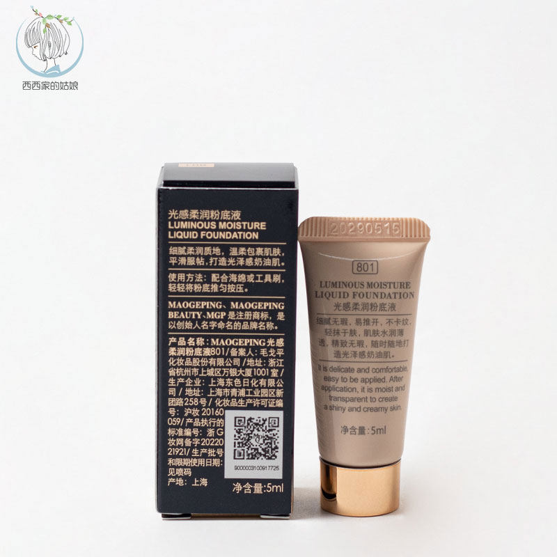 毛戈平光感柔润粉底液5ml小样 801保湿服帖 水奶油 干皮 国内专柜