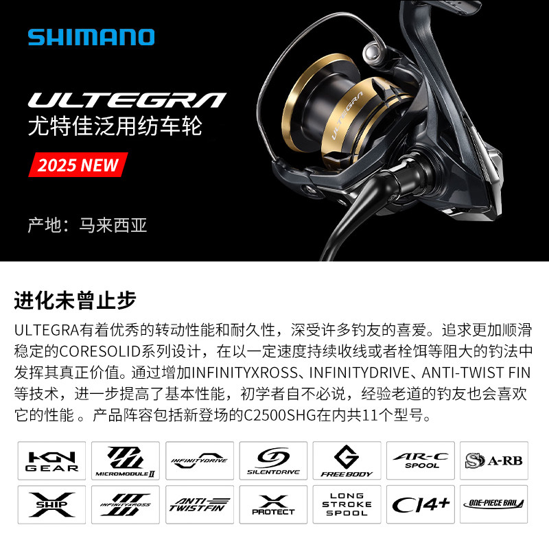 SHIMANO禧玛诺25款尤特佳纺车轮ultegra远投金属路亚轮尤特加正品