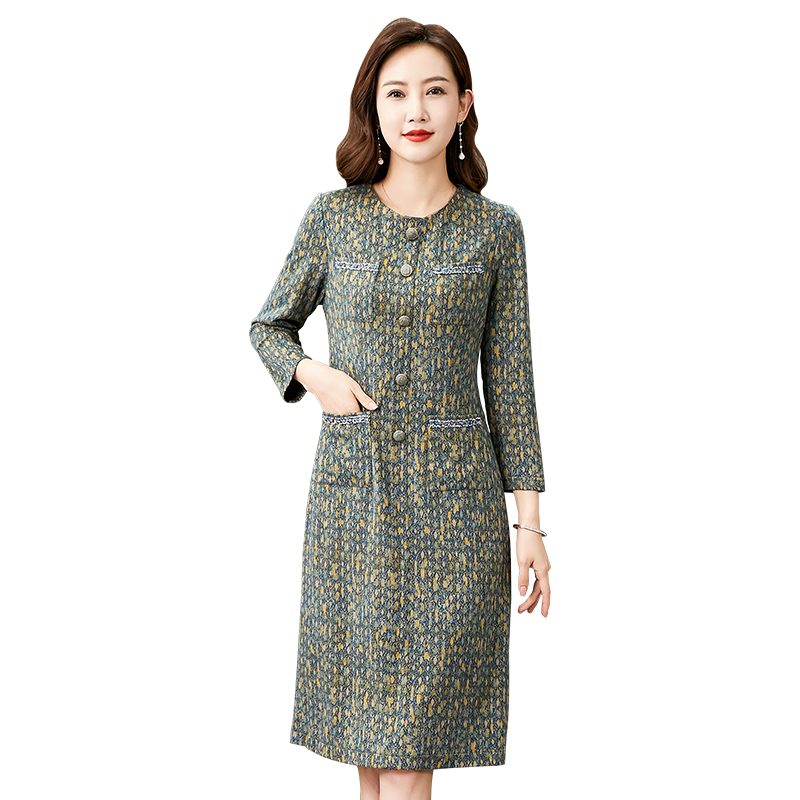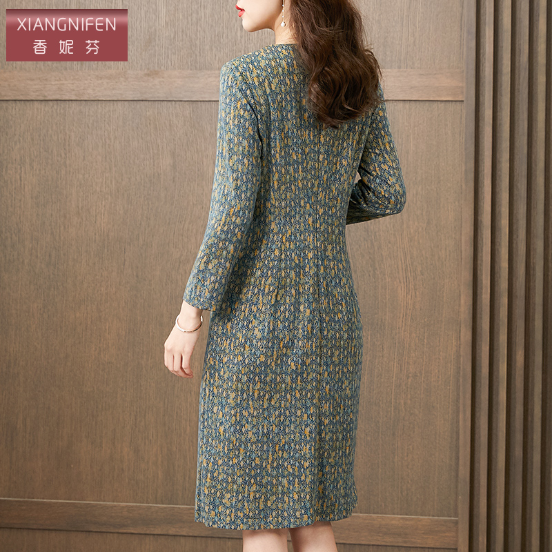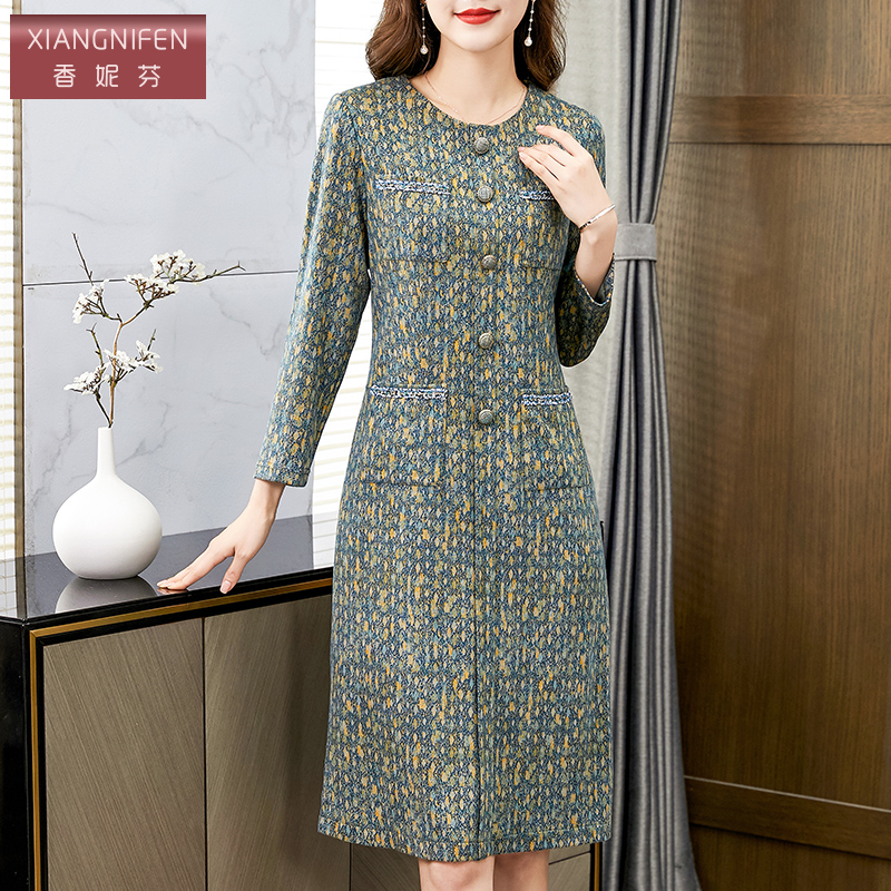 香妮芬高端奢华精致小香风中年妈妈连衣裙2025新款秋季气质长袖裙