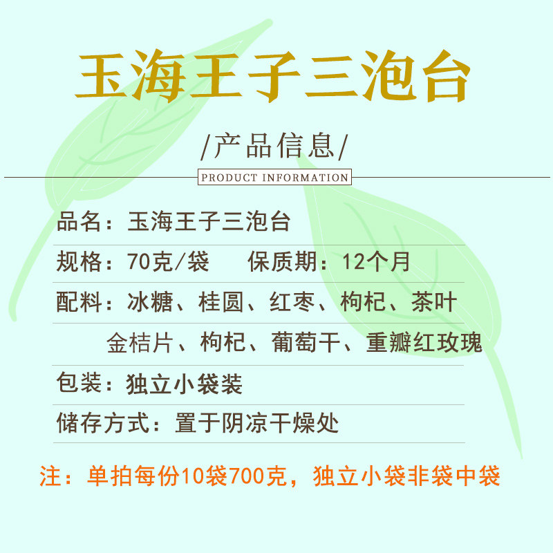 玉海玫瑰三泡台八宝茶70克*10袋