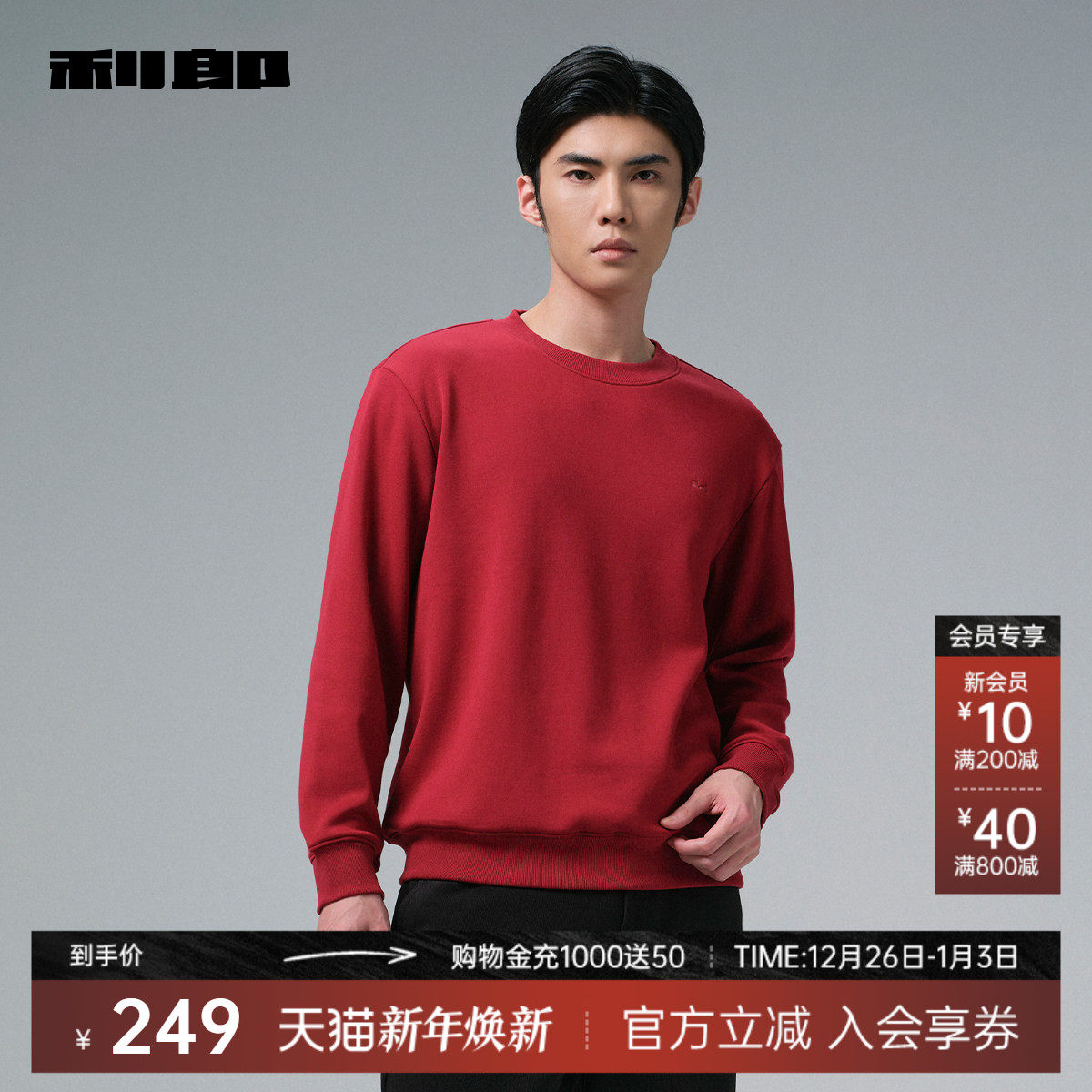 【远红外/加绒】利郎红色卫衣男士新年本命年圆领2025冬季T恤男装