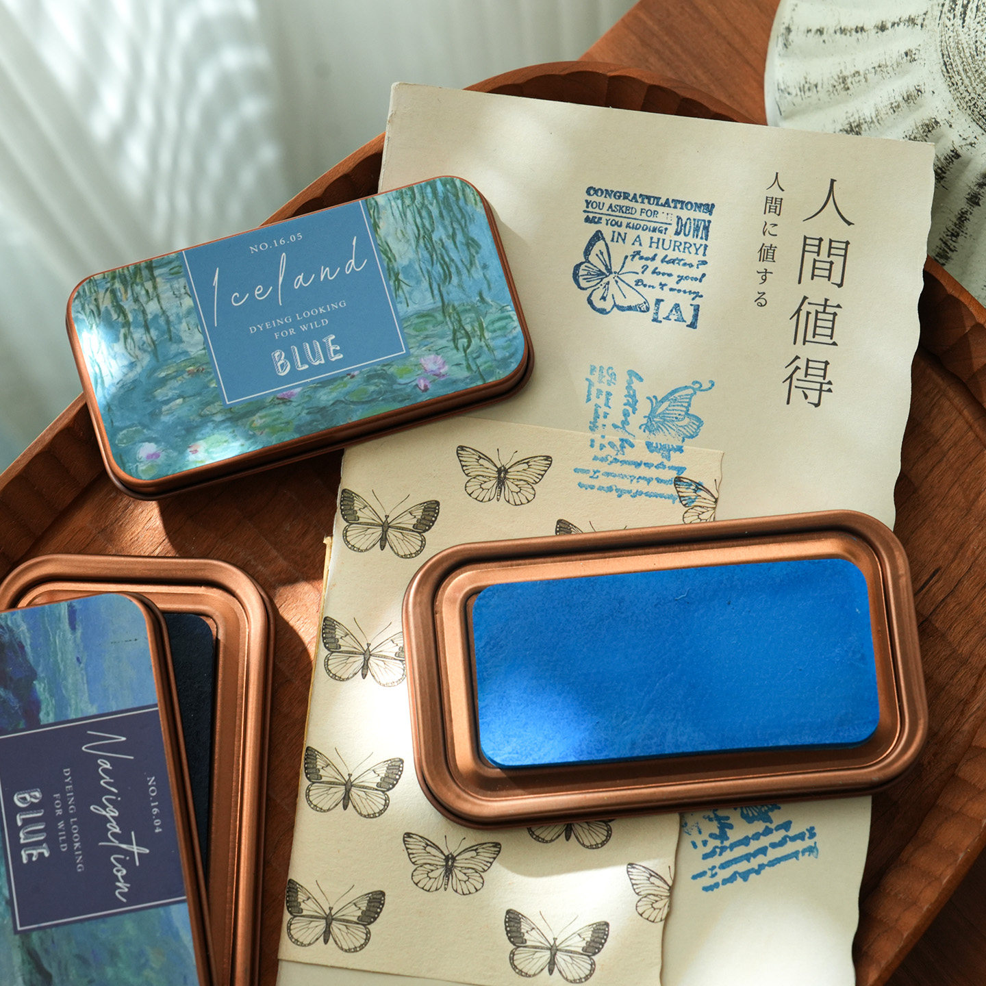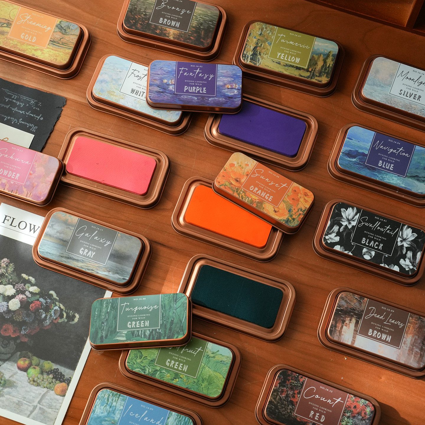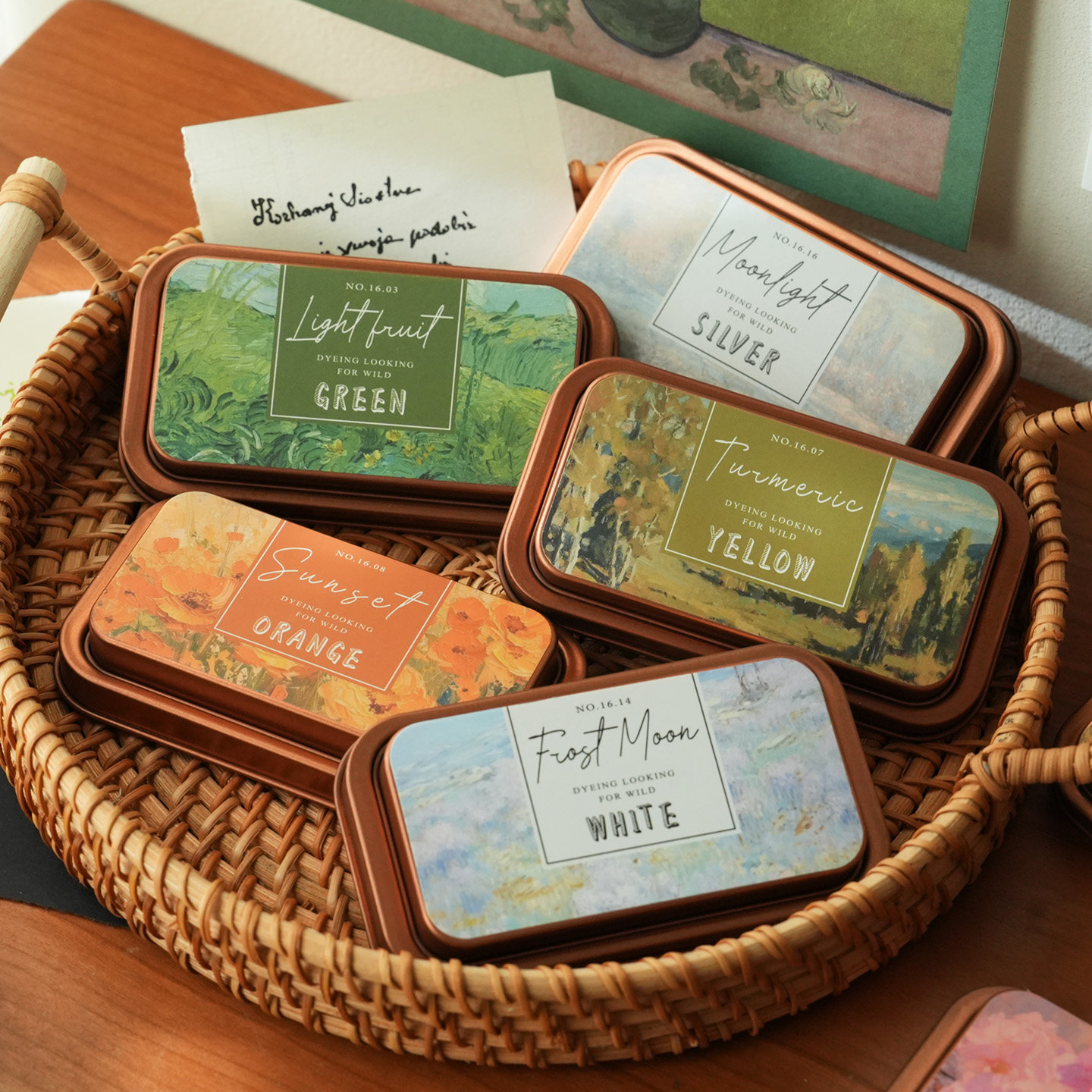 彩色印泥手帐印章 儿童手指画印泥盒 黑色白色印尼手账印台盒子