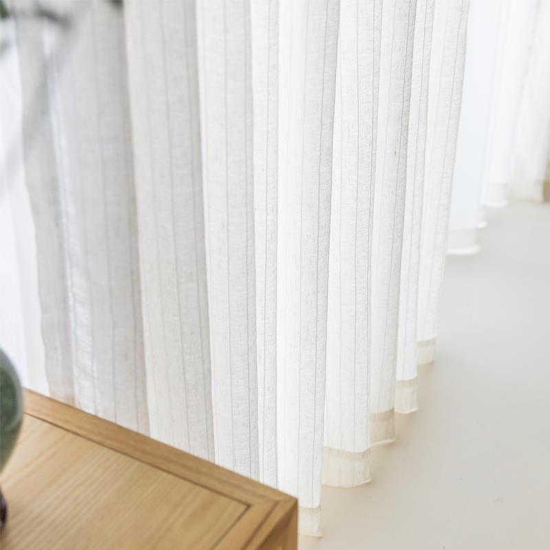 北欧简约ins风客厅阳台窗纱透光不透人亚麻日式免打孔飘窗帘窗纱