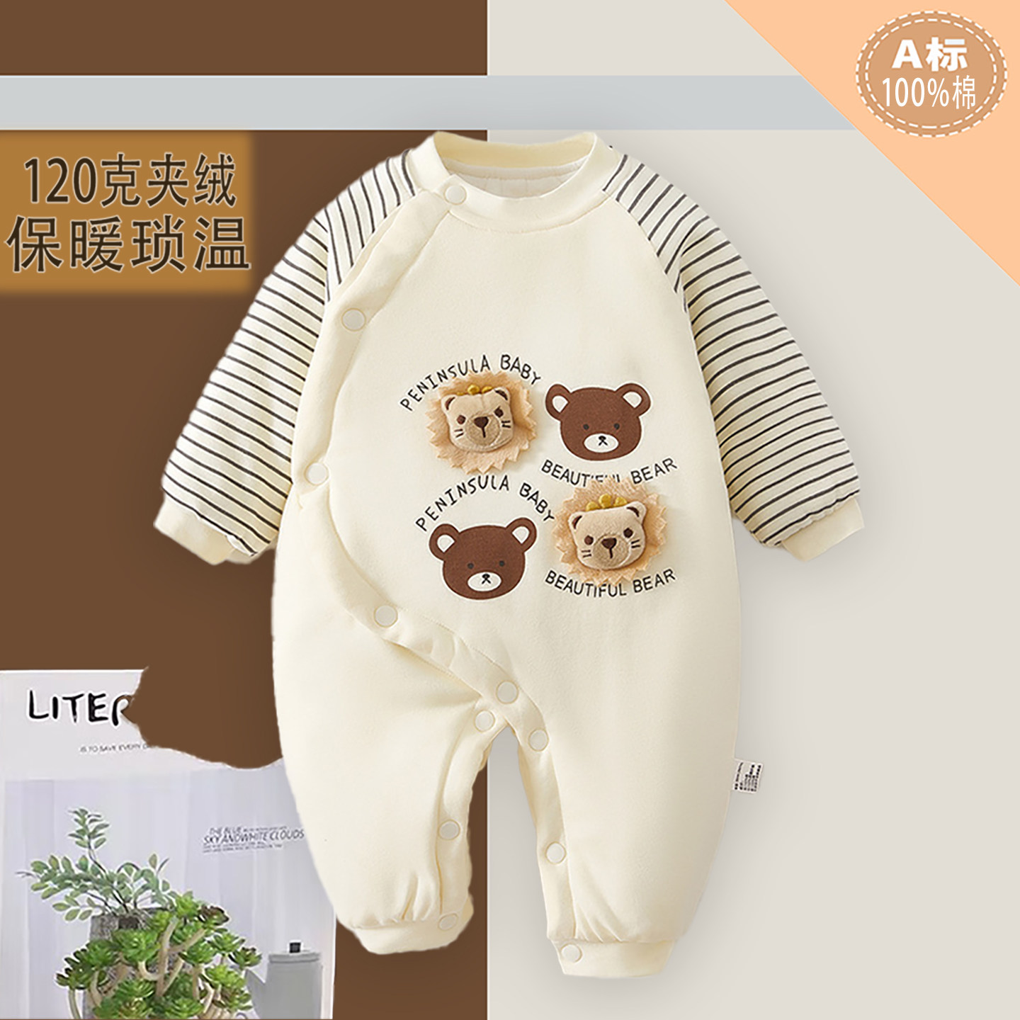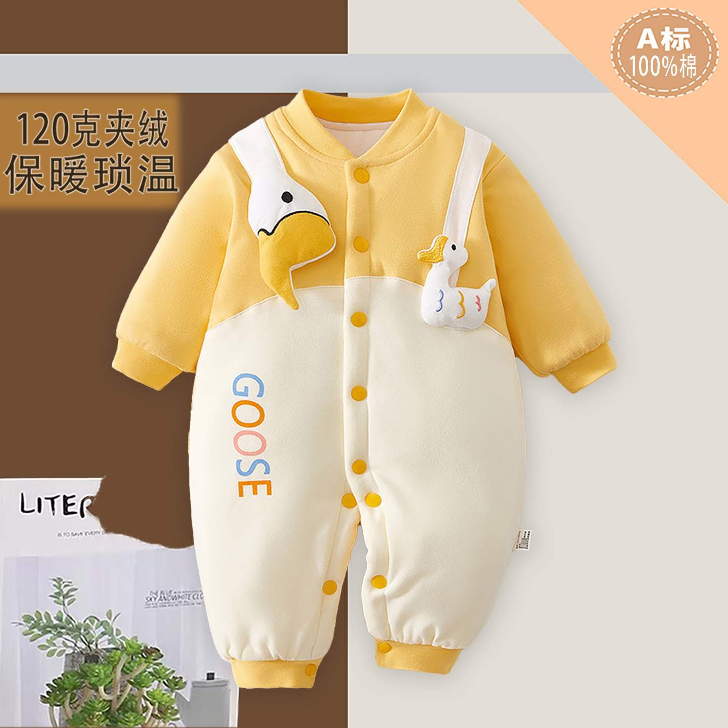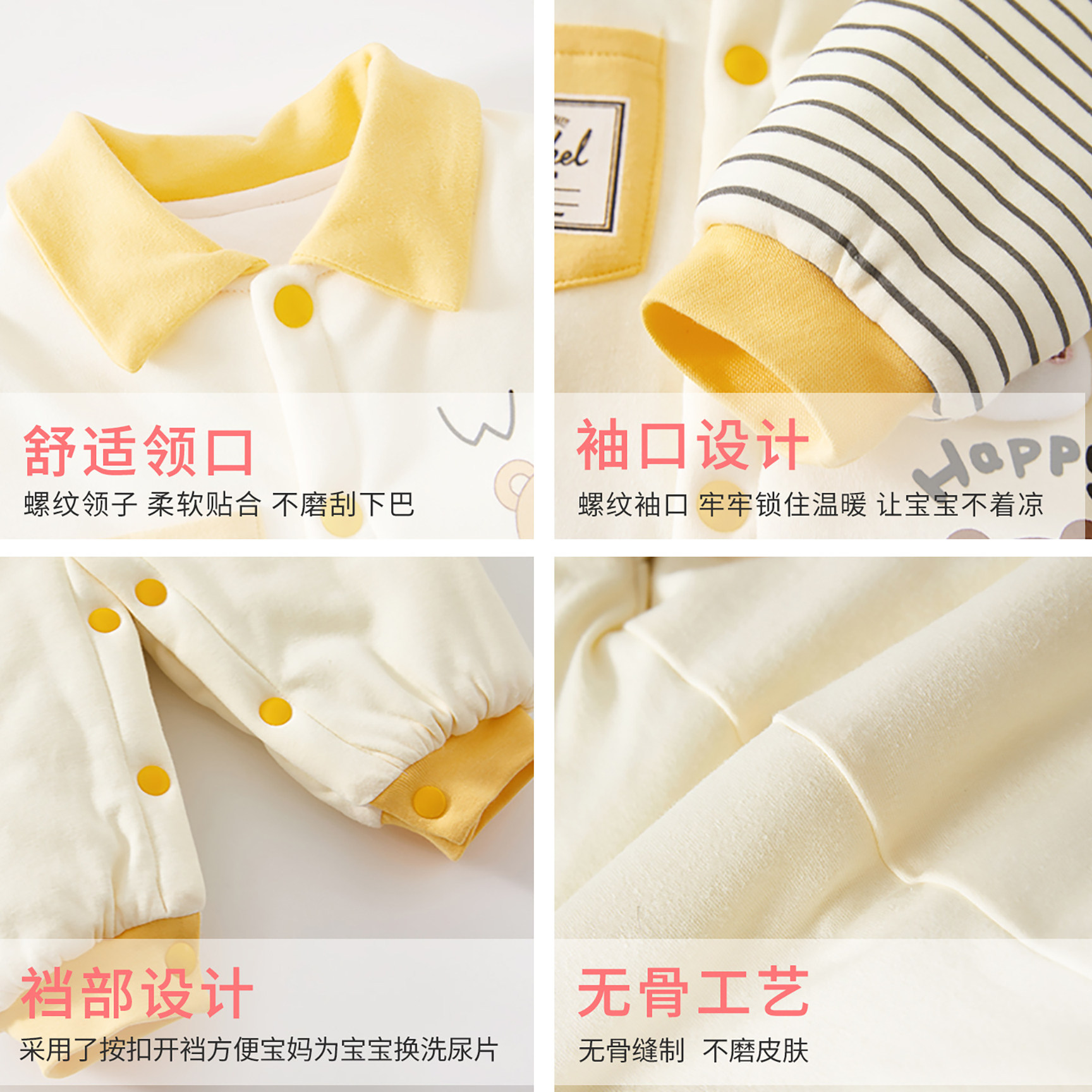 婴儿夹棉连体衣秋冬纯棉保暖哈衣宝宝冬季可爱外出爬服新生儿衣服