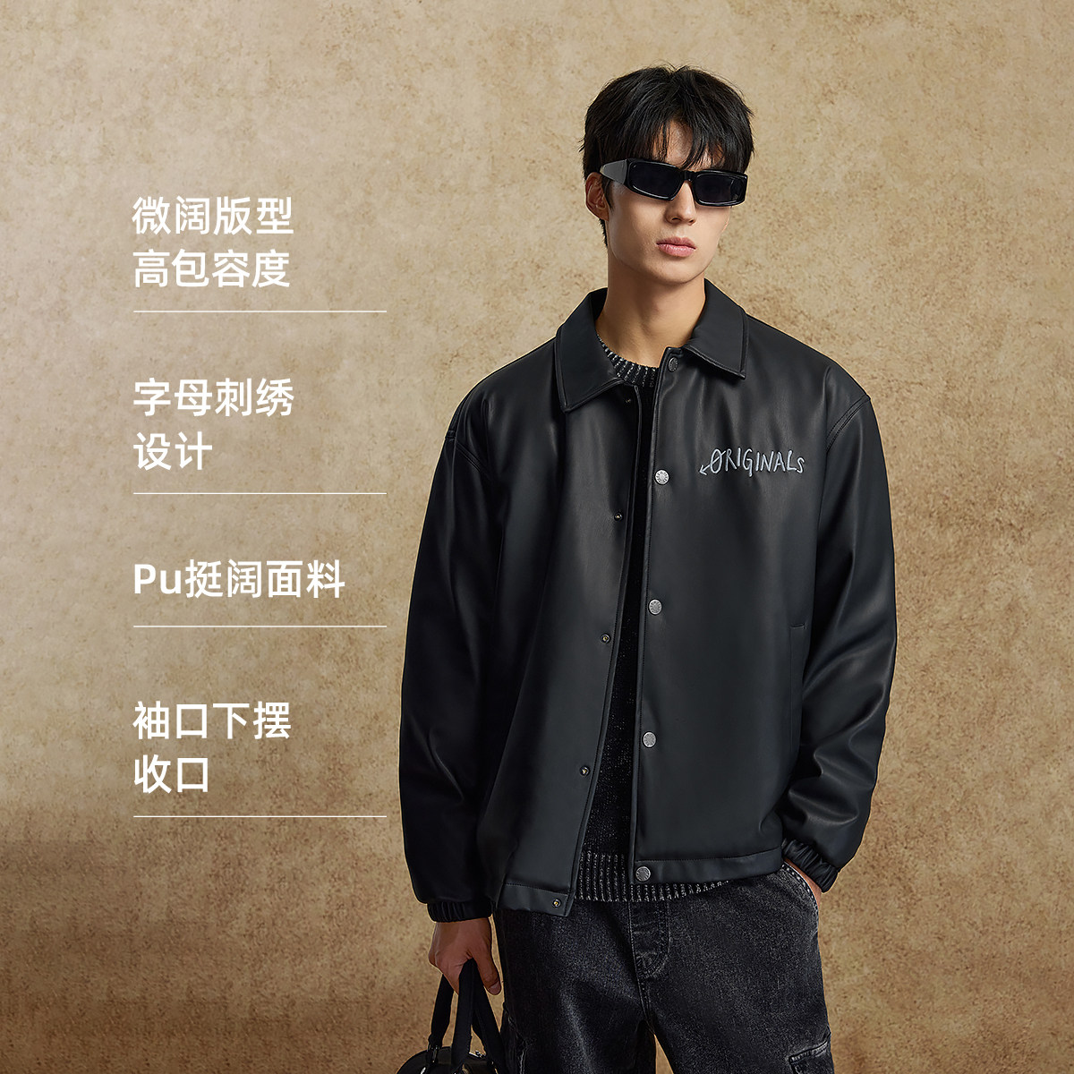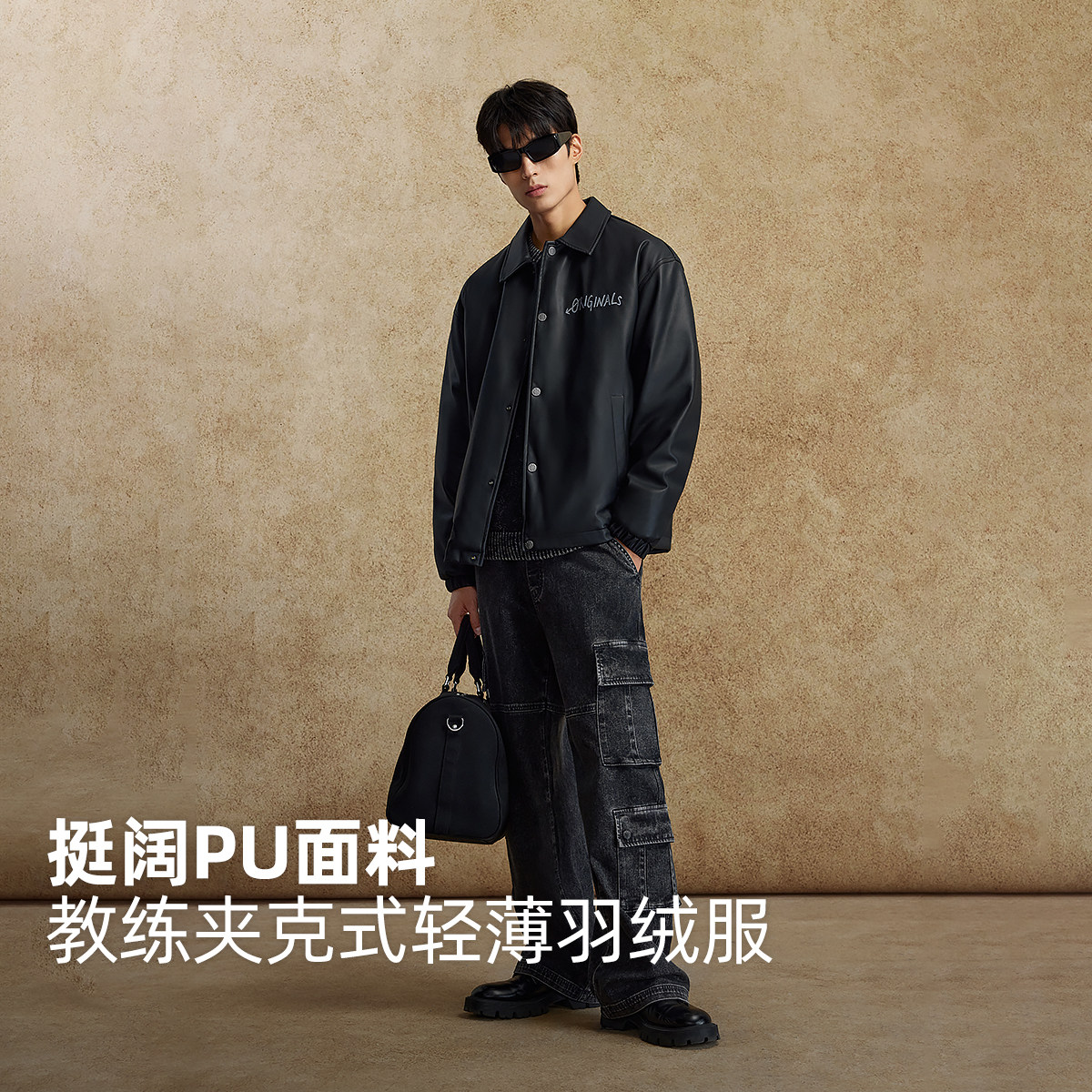 杰克琼斯奥特莱斯男生2025年冬季新款皮衣羽绒服翻领外套美式上衣