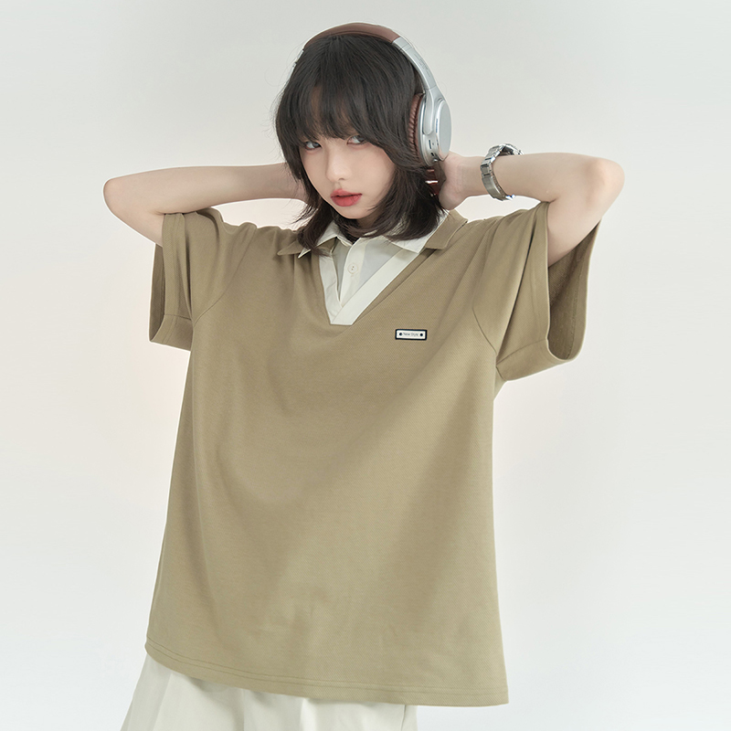 万有引力博物馆设计感衬衫领短袖T恤女夏季2025新款宽松半袖上衣