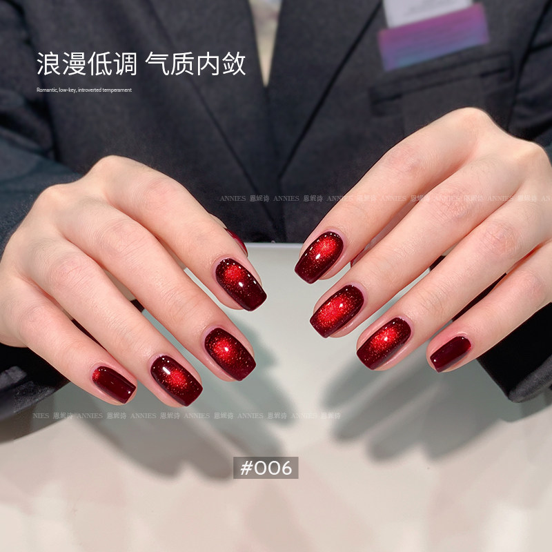 恩妮诗暗夜玫瑰系列猫眼指甲油胶2026年新款车厘子酒红色猫眼美甲