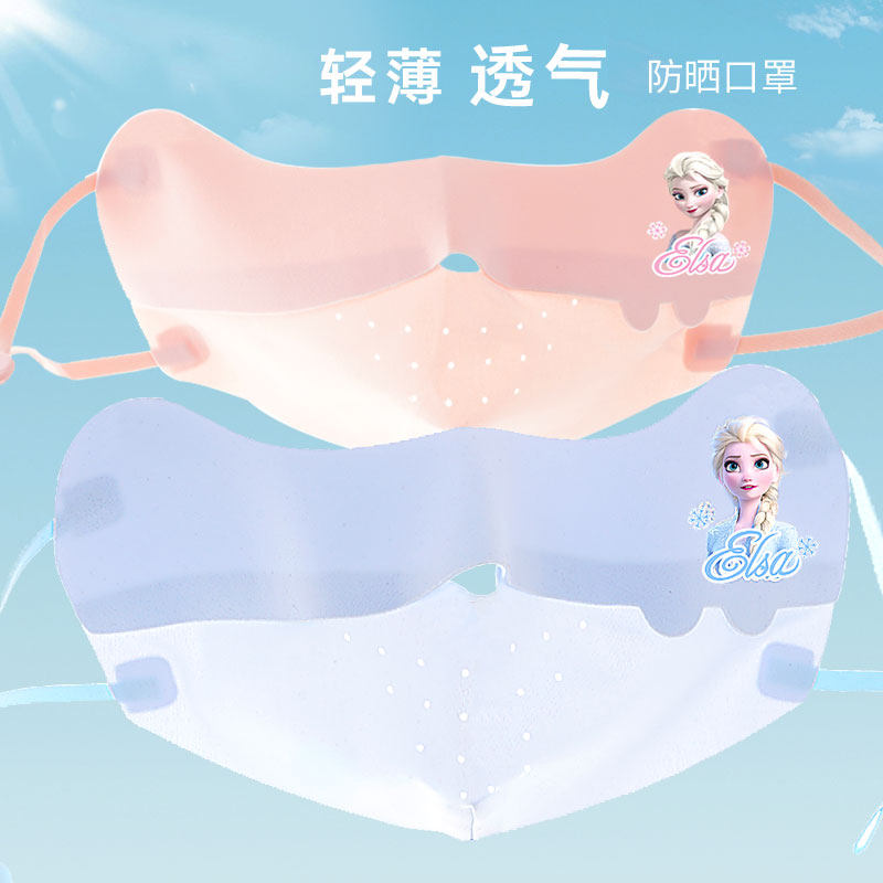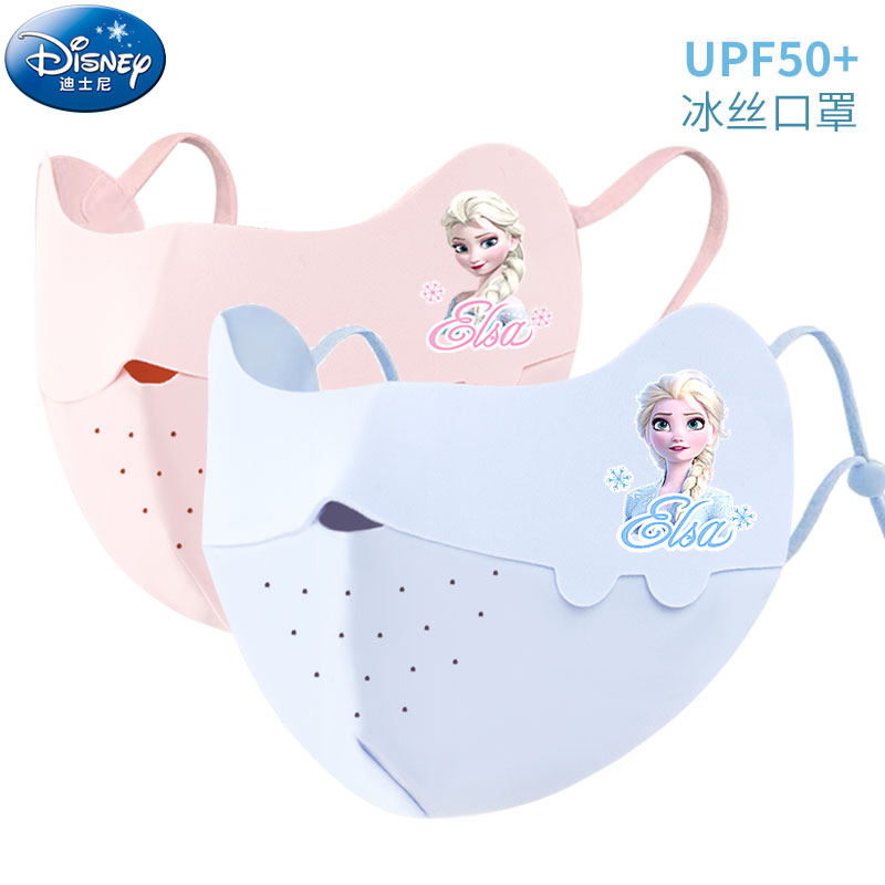 迪士尼女童夏季冰丝防晒口罩透气薄款防紫外线儿童遮阳面罩UPF50+