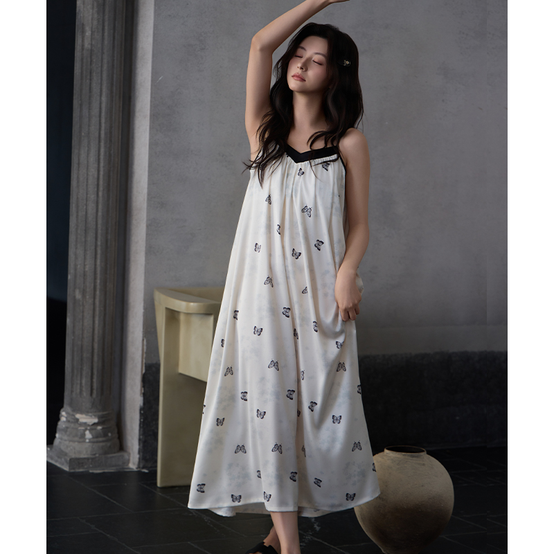 猫人冰丝吊带睡裙女夏季真丝绸美背睡衣带胸垫高级感家居服连衣裙