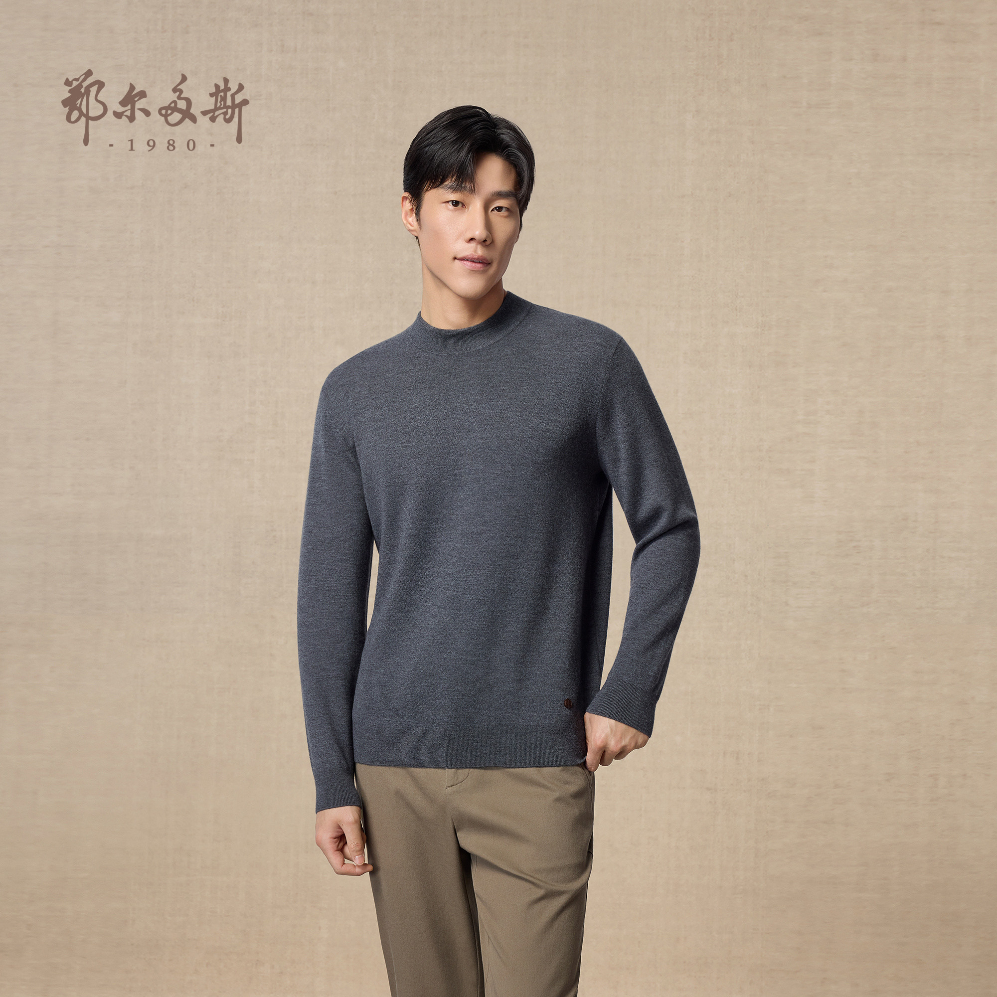 【精纺】鄂尔多斯1980 男装半高领双提厚款羊绒衫25年秋冬新品