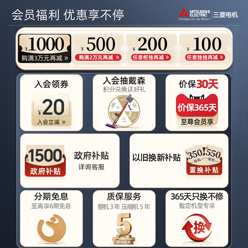 三菱电机MSZ-LZ09VF 1匹一级变频家用空调卧室冷暖两用挂机菱之洁