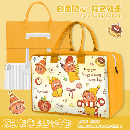 卡通星星人旅行袋行李包毛毡包行李箱拉杆大容量收纳袋儿童手提包