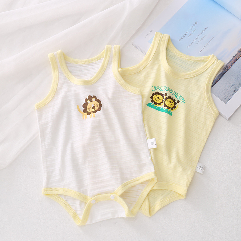 外贸新生婴儿童宝宝无袖背心哈衣夏季超薄款竹节纯棉包屁连体爬服