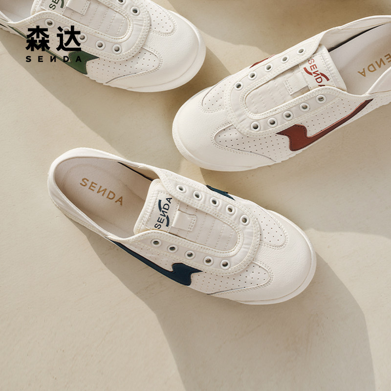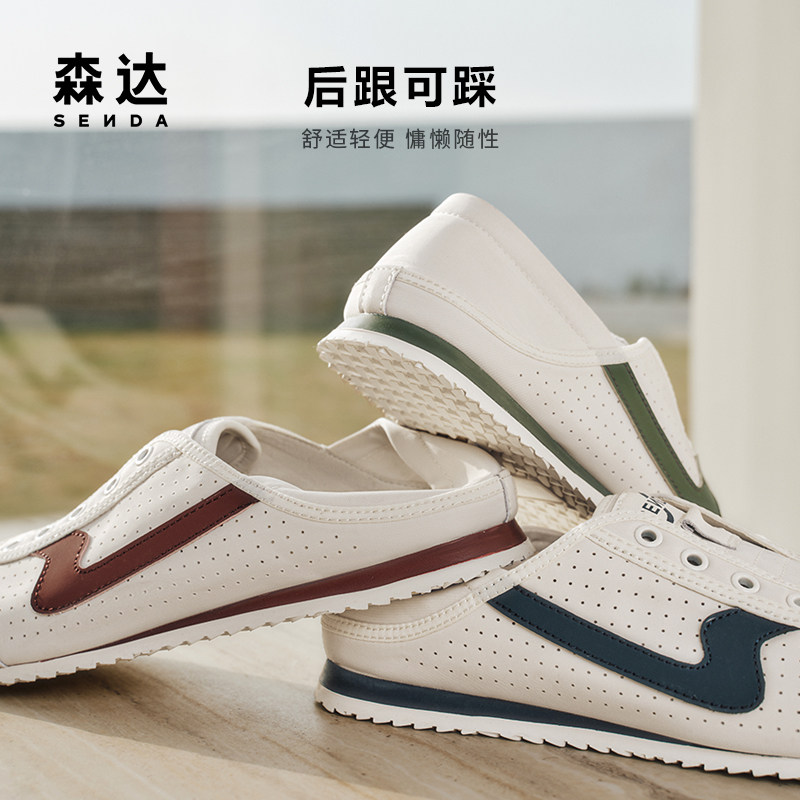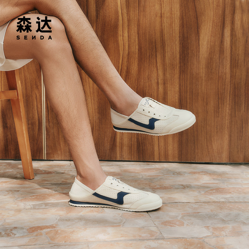 森达板鞋男款夏新商场同款户外平底休闲小白鞋1WK01BM5