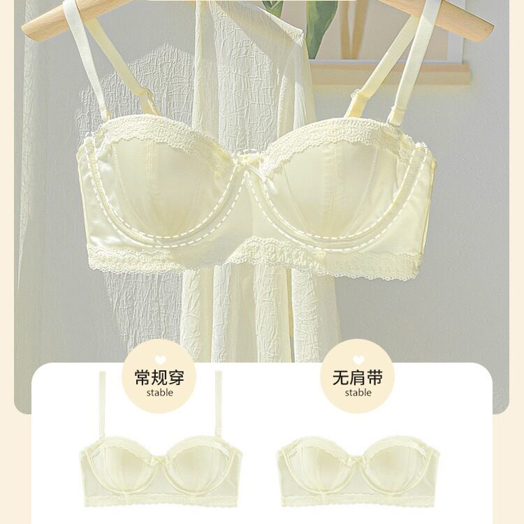 大胸显小胸聚拢钢圈半杯内衣女上托防下垂法式无痕薄款文胸罩套装