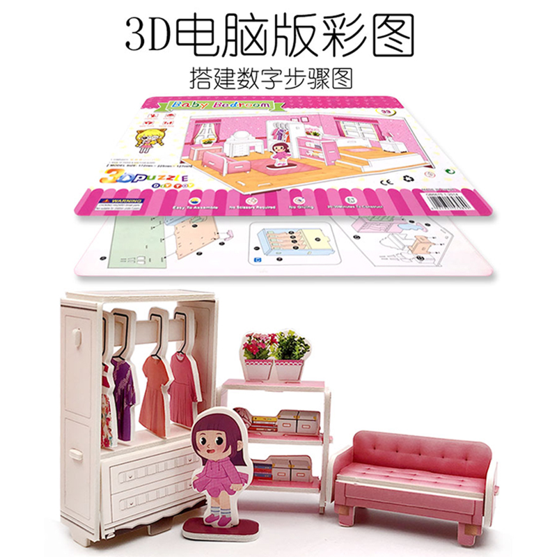 小屋房子卧室模型拼装益智玩具儿童3D立体拼图diy女孩房间纸质5岁
