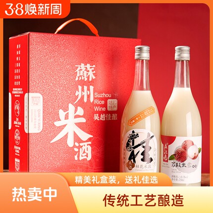 在原味苏州米酒礼盒江南桂花荔枝糯米甜酒中秋礼双瓶套装
