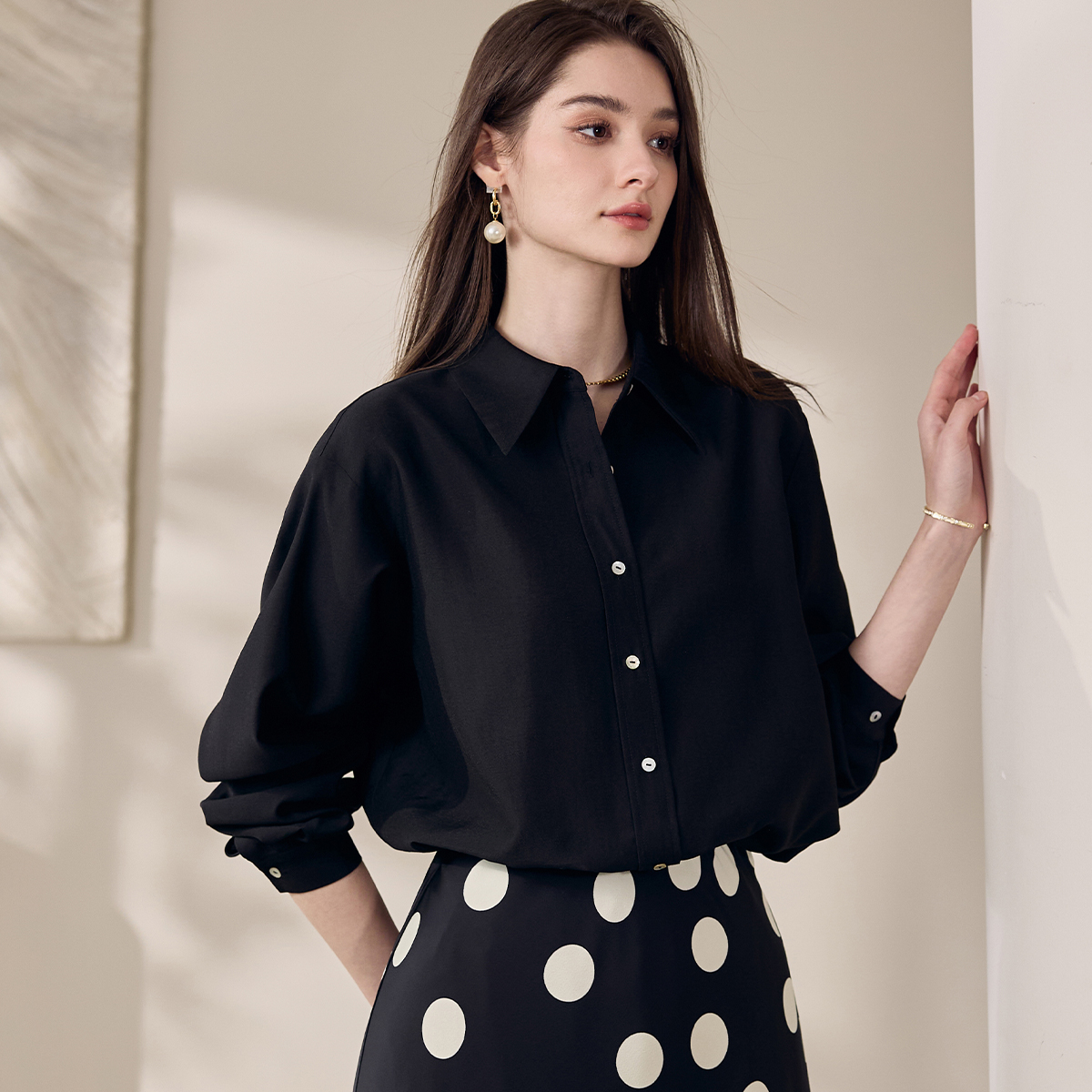 罗衣复古波点衬衫半身裙两件套