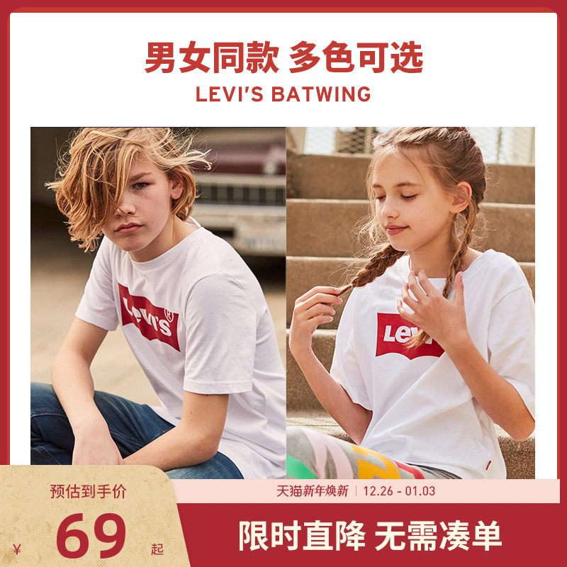 李维斯儿童装男童短袖T恤夏季新款中大童纯棉上衣女童半袖亲子装