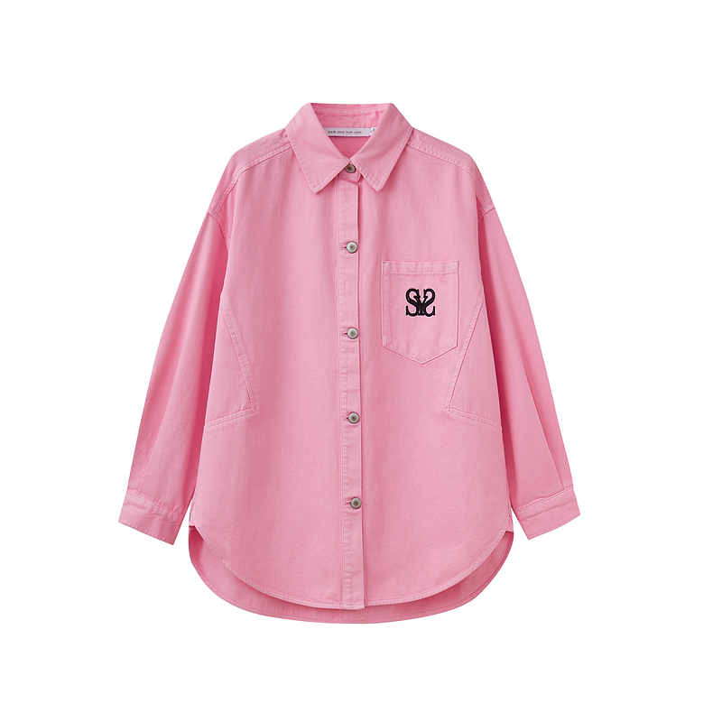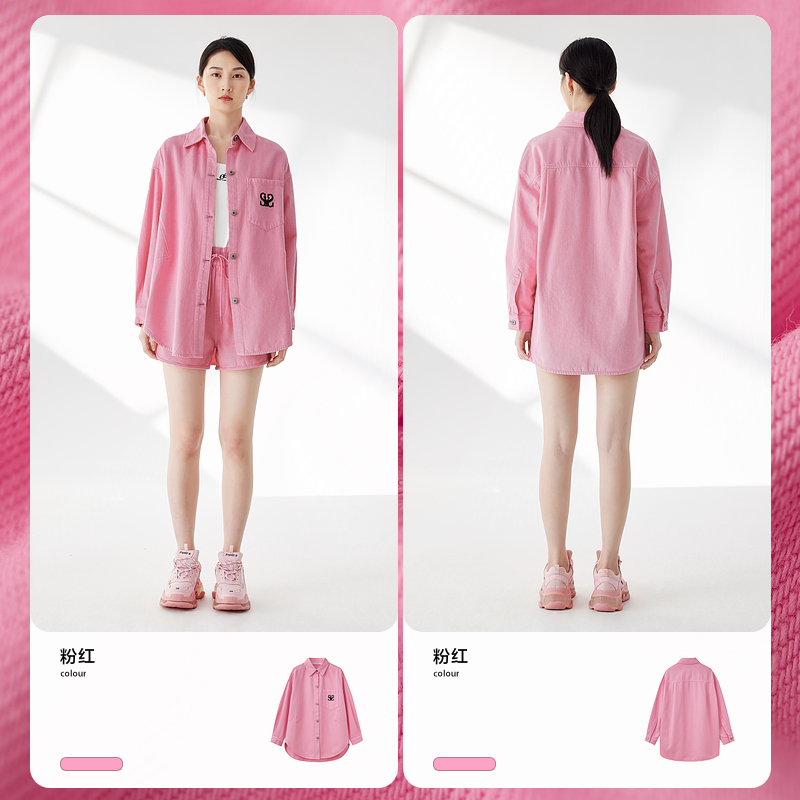 水云间粉色纯棉衬衫外套女秋季新款2025百搭通勤牛仔翻领长袖上衣
