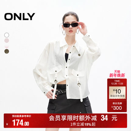 【ONLY奥莱】秋冬设计感透气轻薄翻领宽松落肩衬衫女