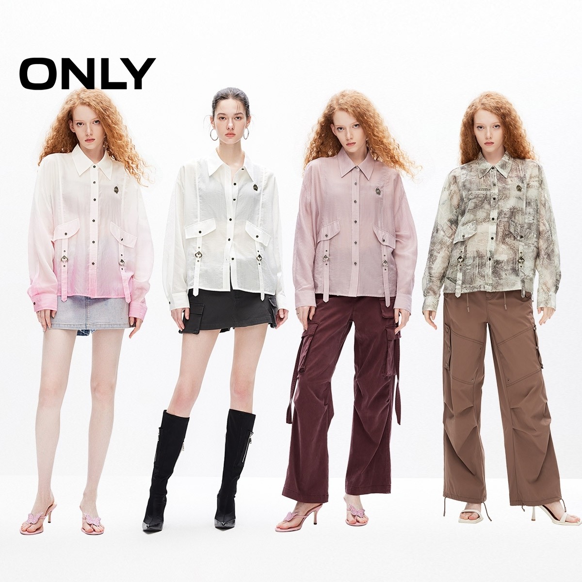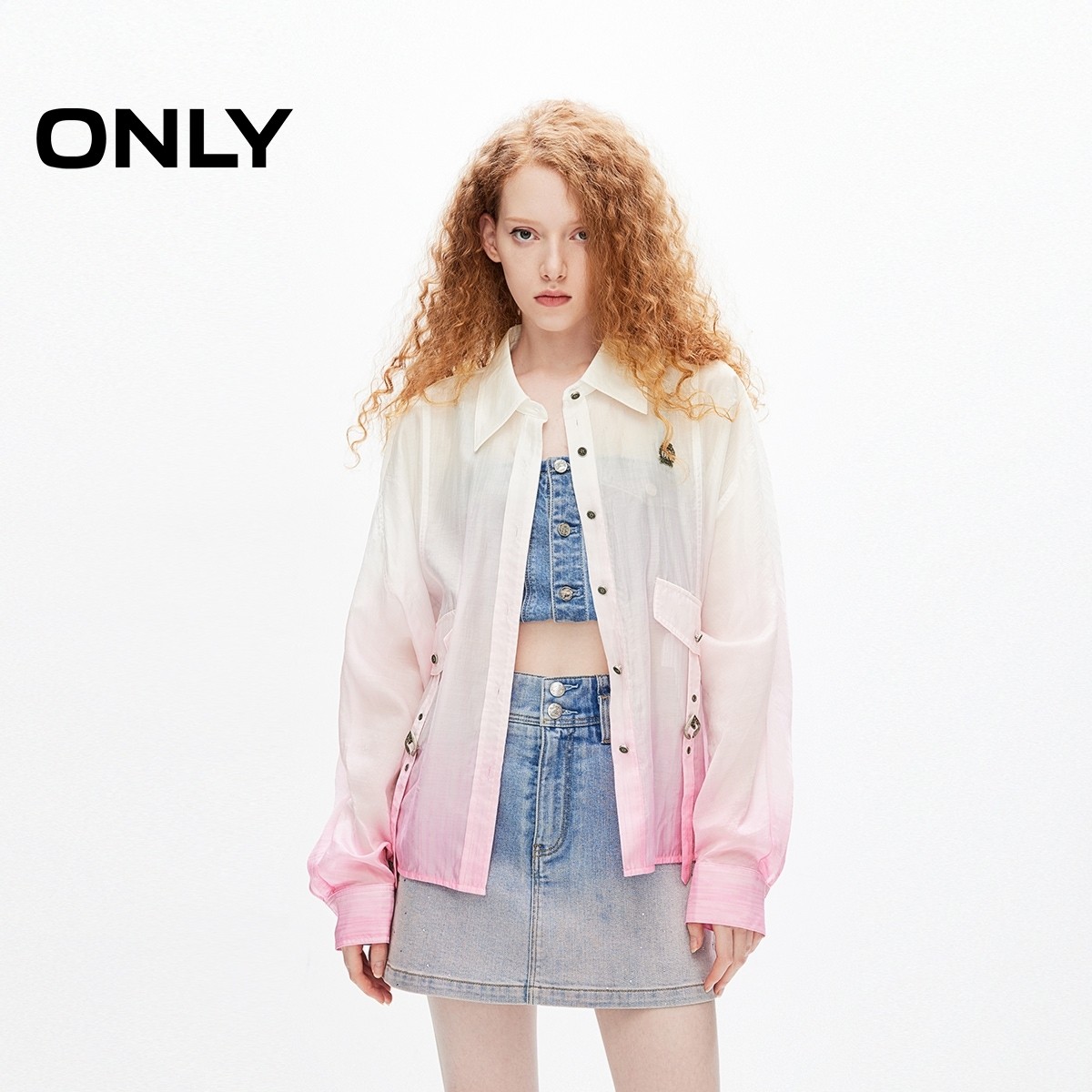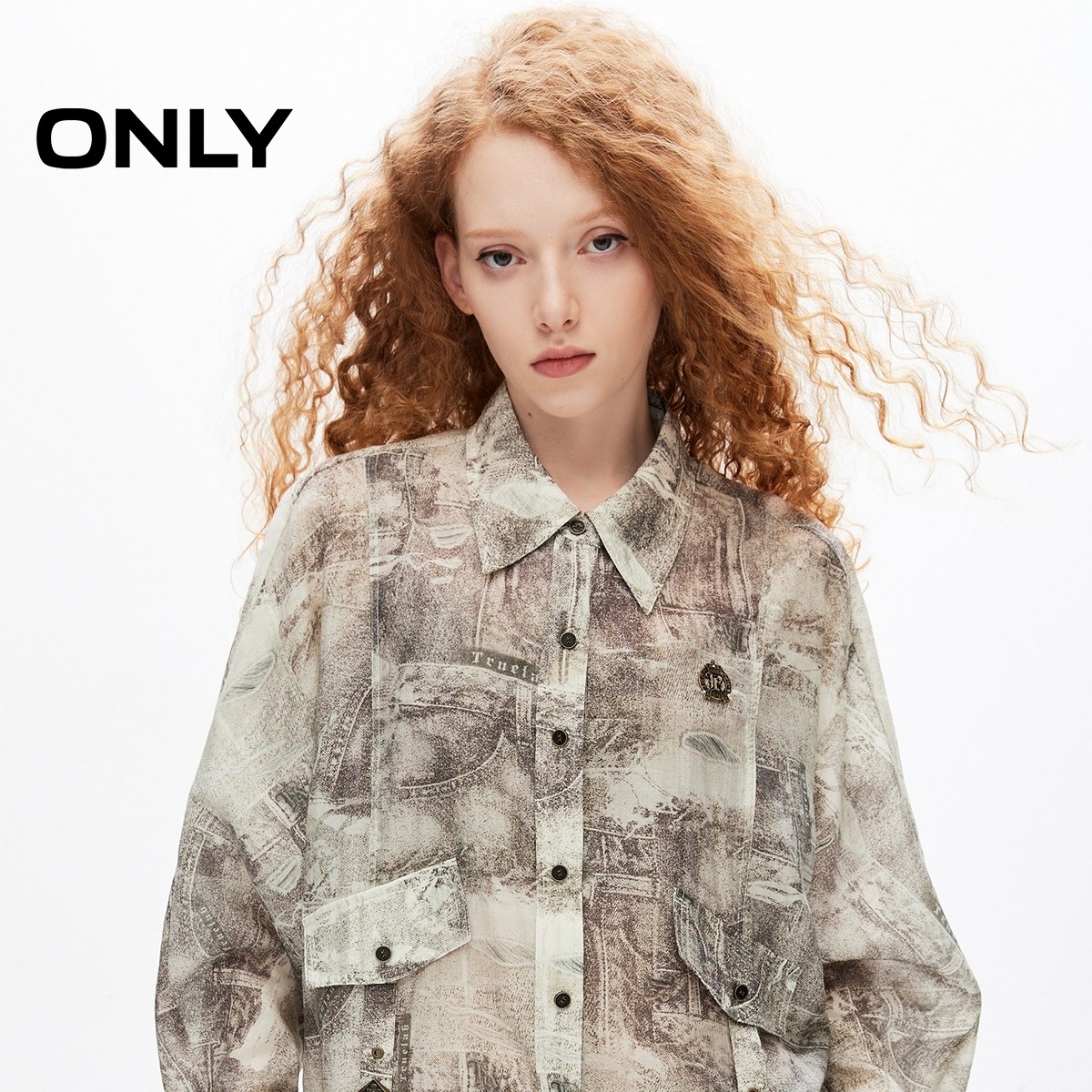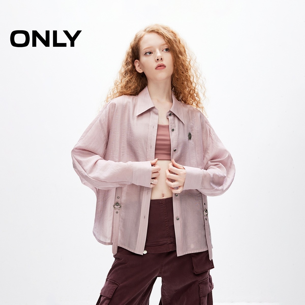 ONLY透气轻薄翻领宽松落肩衬衫