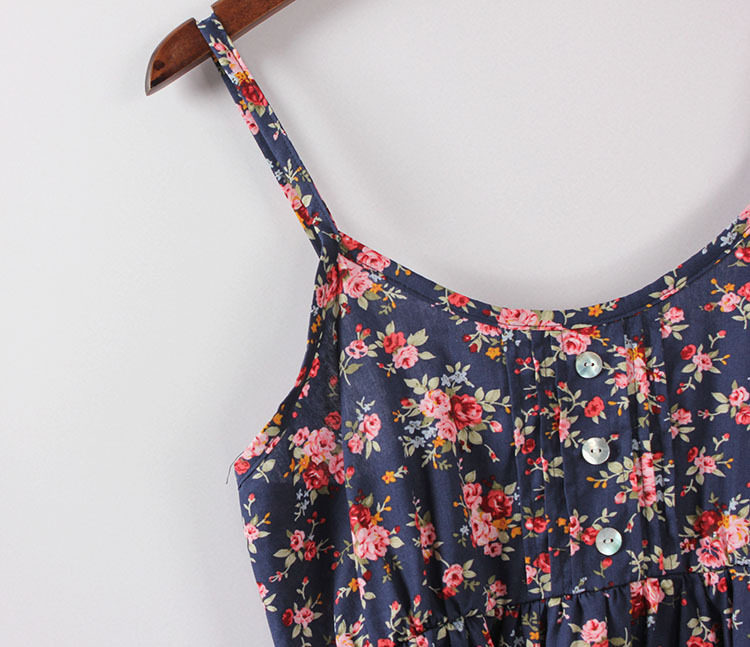 纯棉布小清新田园碎花吊带裙森女系连衣裙文艺海边度假沙滩打底裙