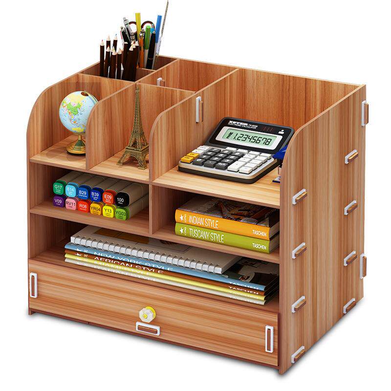 办公桌面收纳盒用品大号多层抽屉文件夹文具室木质储物书桌置物架