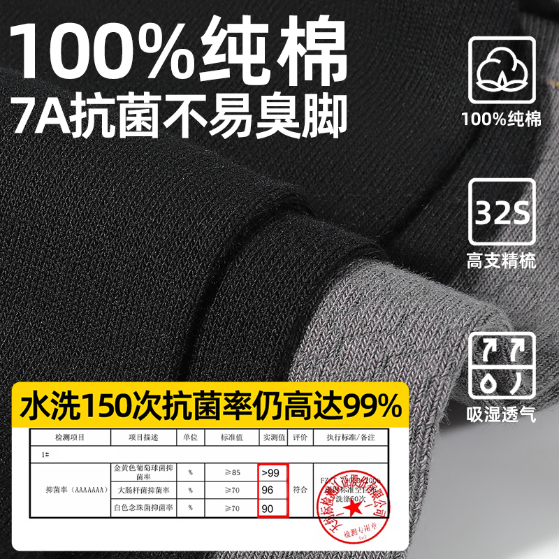七匹狼男士商务防臭袜子纯棉正装袜吸汗透气中筒袜黑男袜抑菌长袜