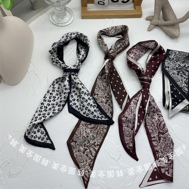 黑白腰果2024新款高级感双面图案小丝巾女细窄搭配衬衫夏季飘带